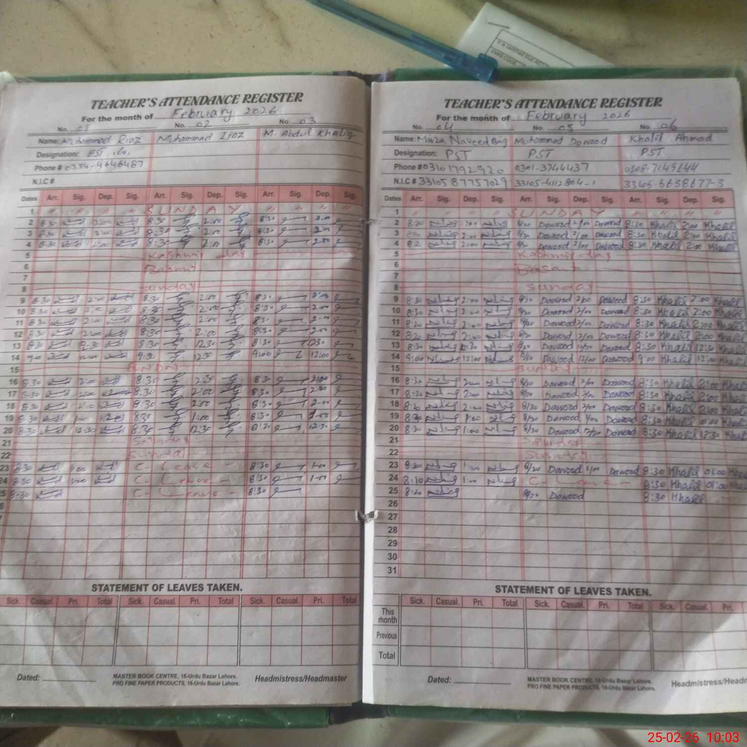 | Name: Mu**** RI**** Designation: (School Headmaster's/Headmistress's) EST (GENERAL) Phone/Cell Number: 03**** |
