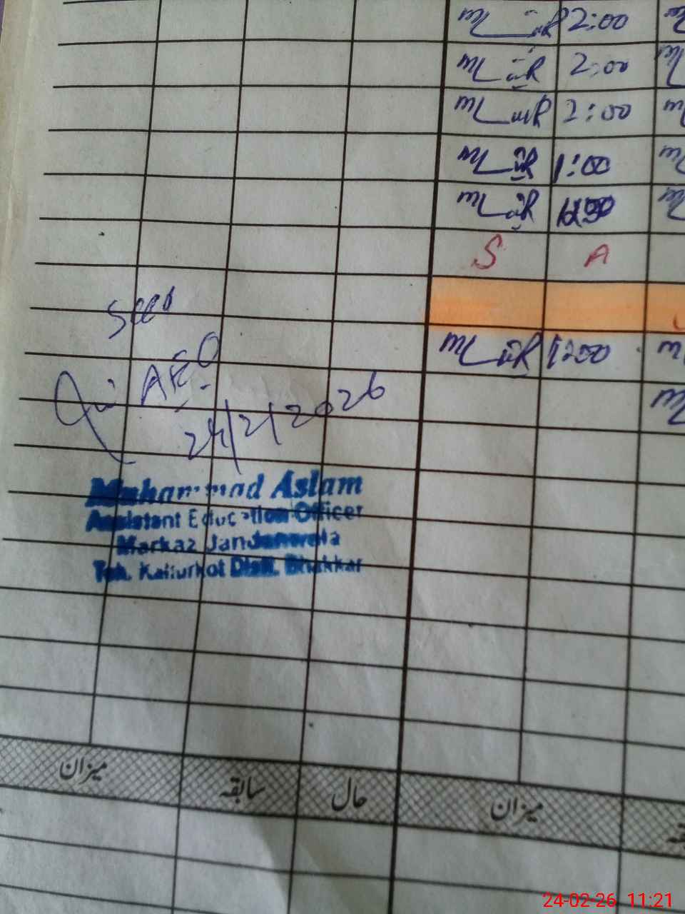 | Certified that this School was Inspected by the Undersigned MEA/DMO Today and the Information Stated Above is as Per Record. | |||||