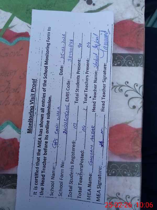 | Attendance Register | Head Teacher | MEA with School | Visit Proof |