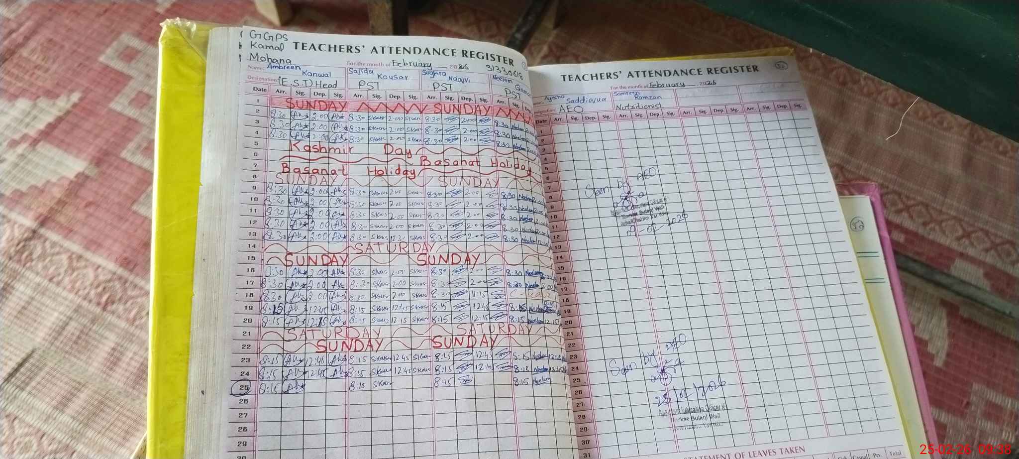 | Attendance Register | Head Teacher | MEA with School | Visit Proof |