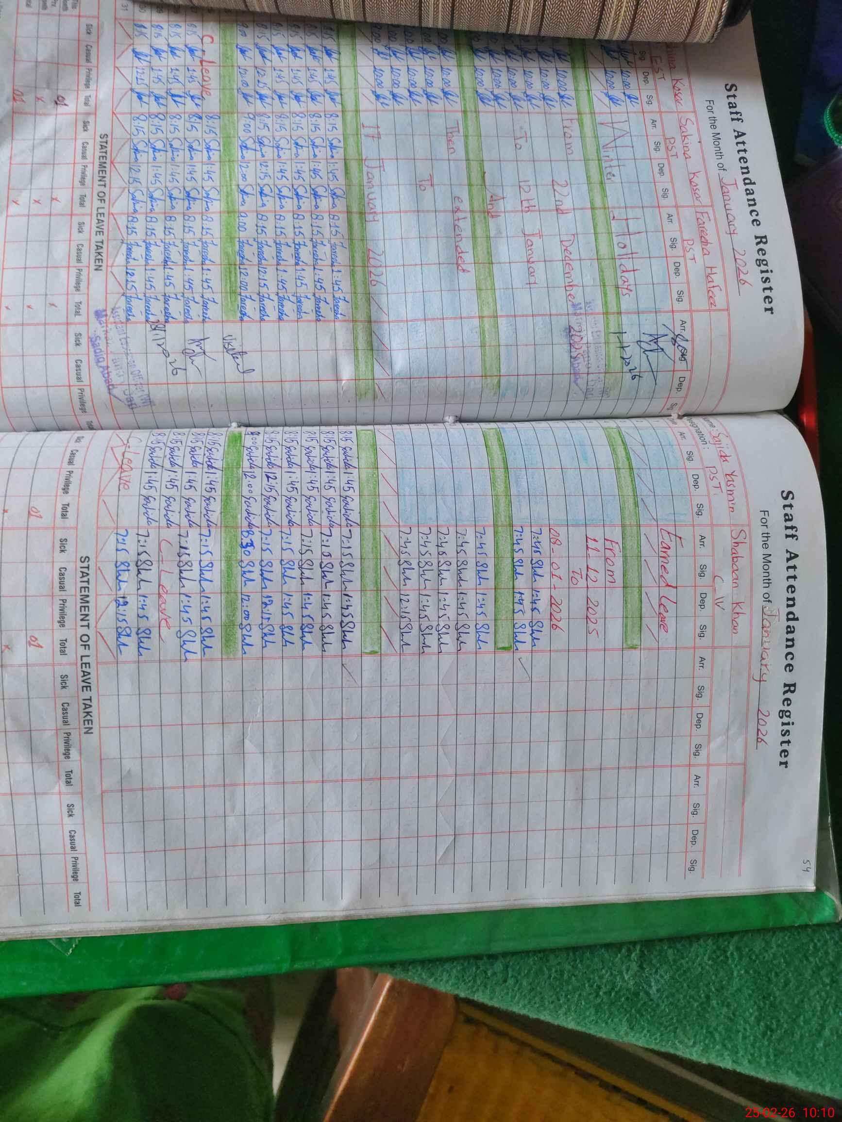 | Leave | Duty | Absent | Maternity | Medical | Ex- Pak |