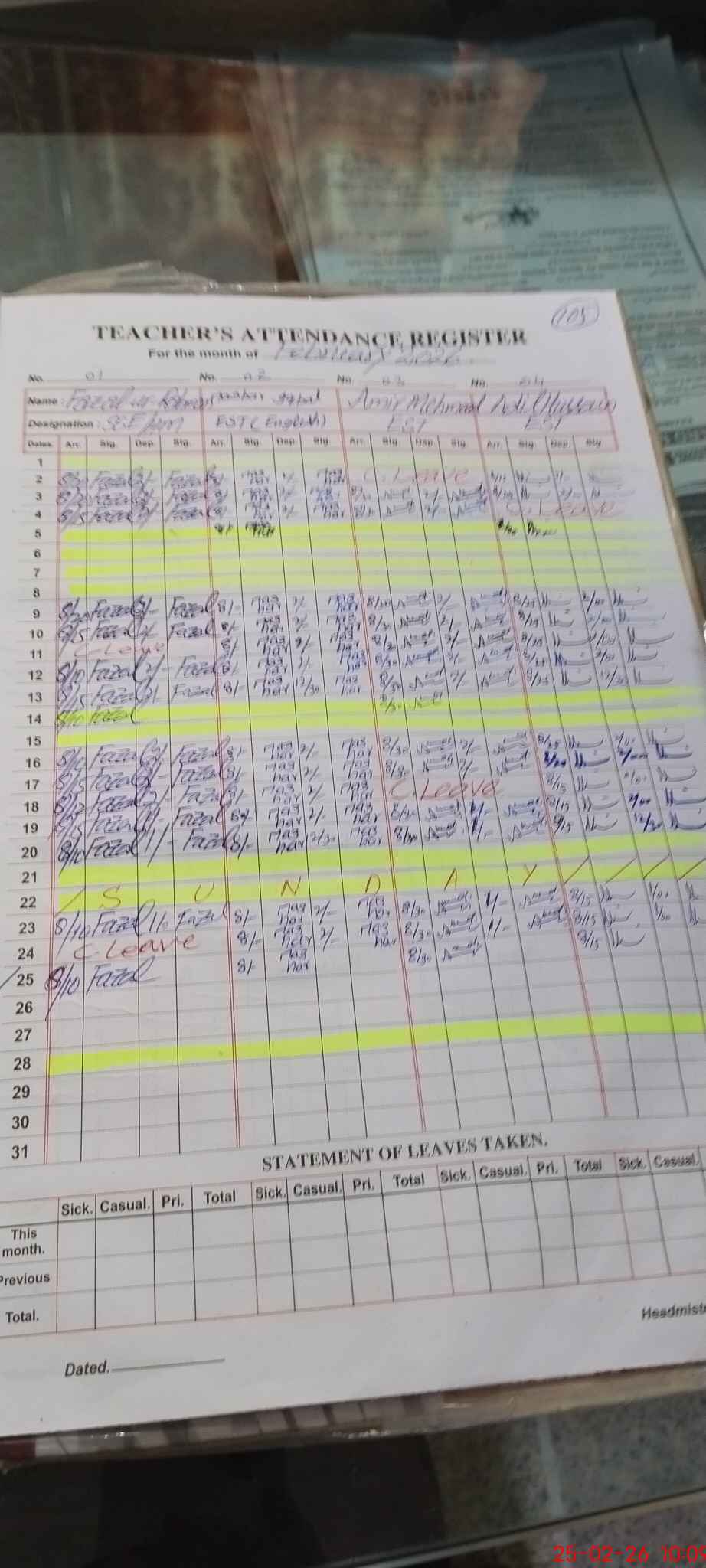 | Name: FA**** URRA**** Designation: (School Headmaster's/Headmistress's) SSE ENG Phone/Cell Number: 03**** |