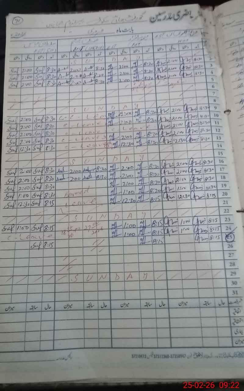 | 38**** | Ha**** Ul**** Kh**** | Temporary | 0 | 0 | 0 | 0 | 0 | 0 | 0 | 0 | 0 | Casual | |