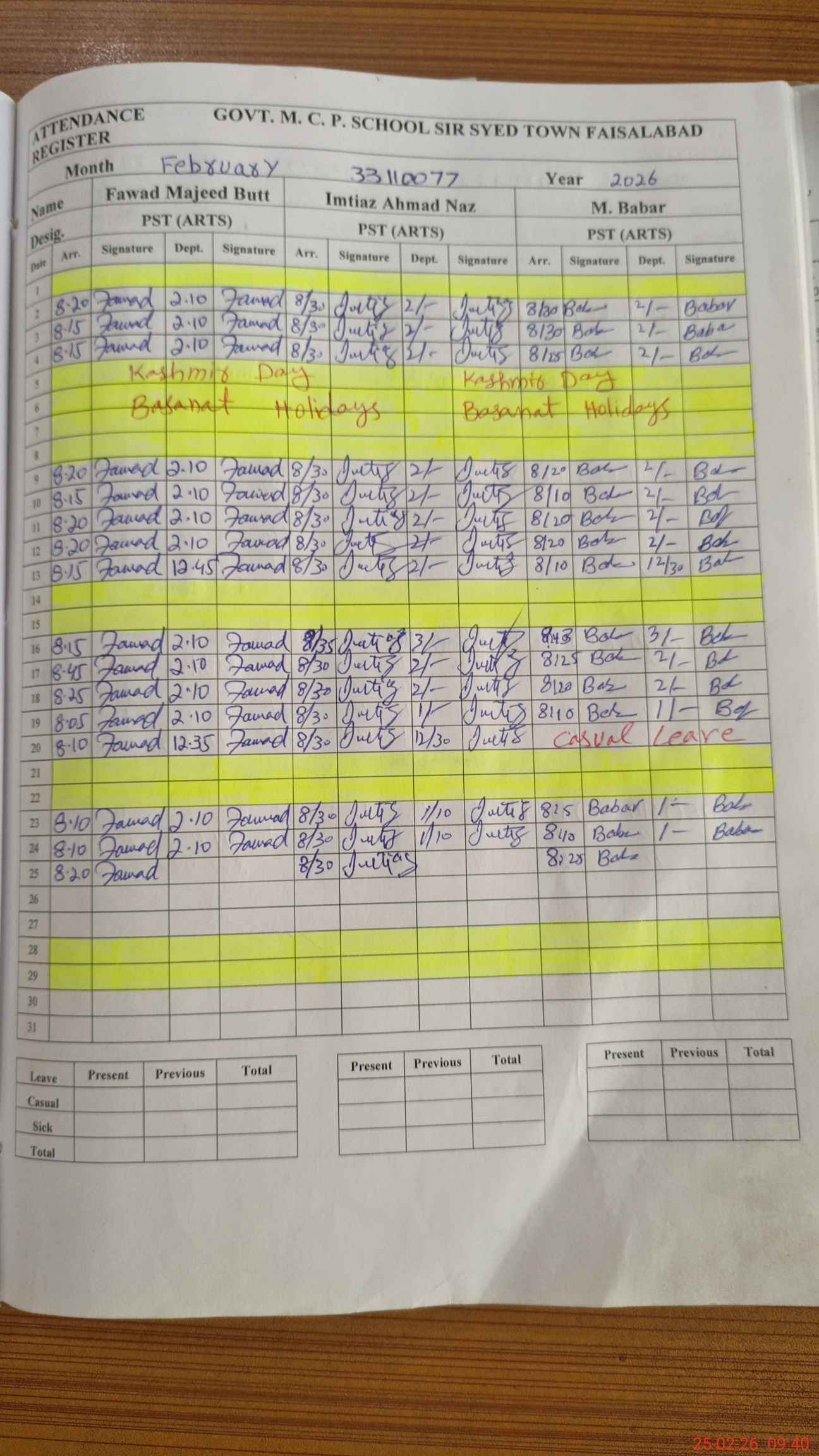 | 33**** | Ze**** Al**** | CHOWKIDAR | Regular | 1 | 0 | 0 | 0 | 0 | 0 | 0 | 0 | 1 | Casual |
