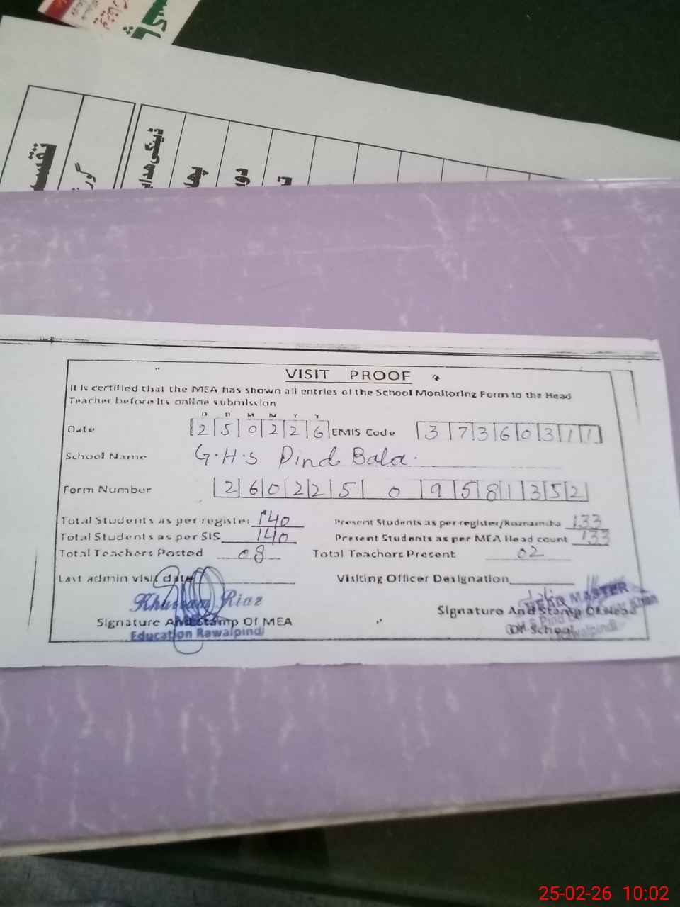 | EMIS Code: 37360311 | Name of School: GHS PIND BALA | |||