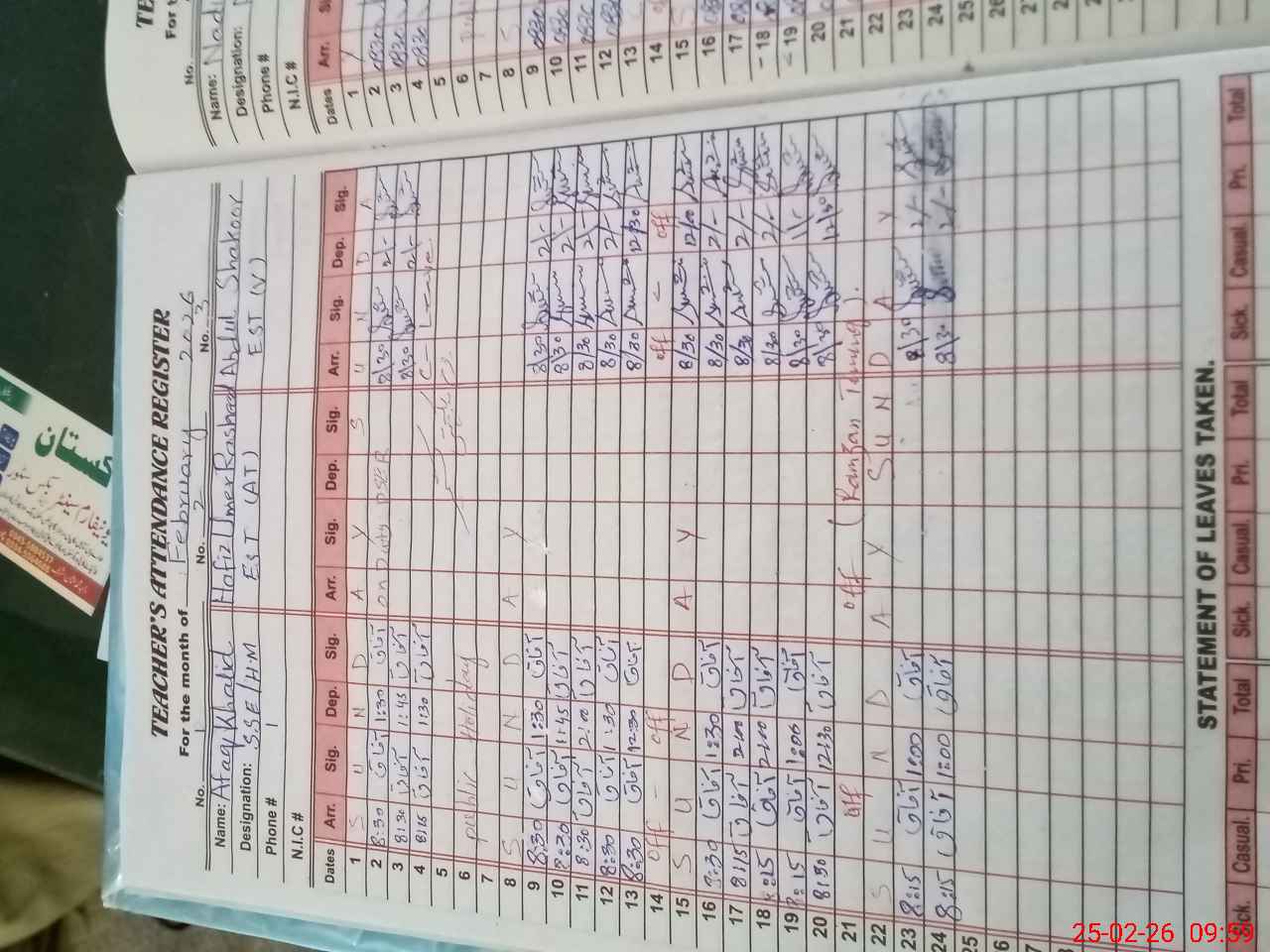 | 37**** | Af**** Kh**** | SSE Urdu | Contract | 0 | 0 | 0 | 0 | 0 | 0 | 0 | 0 | 0 | Absent (Un-Authorized) |