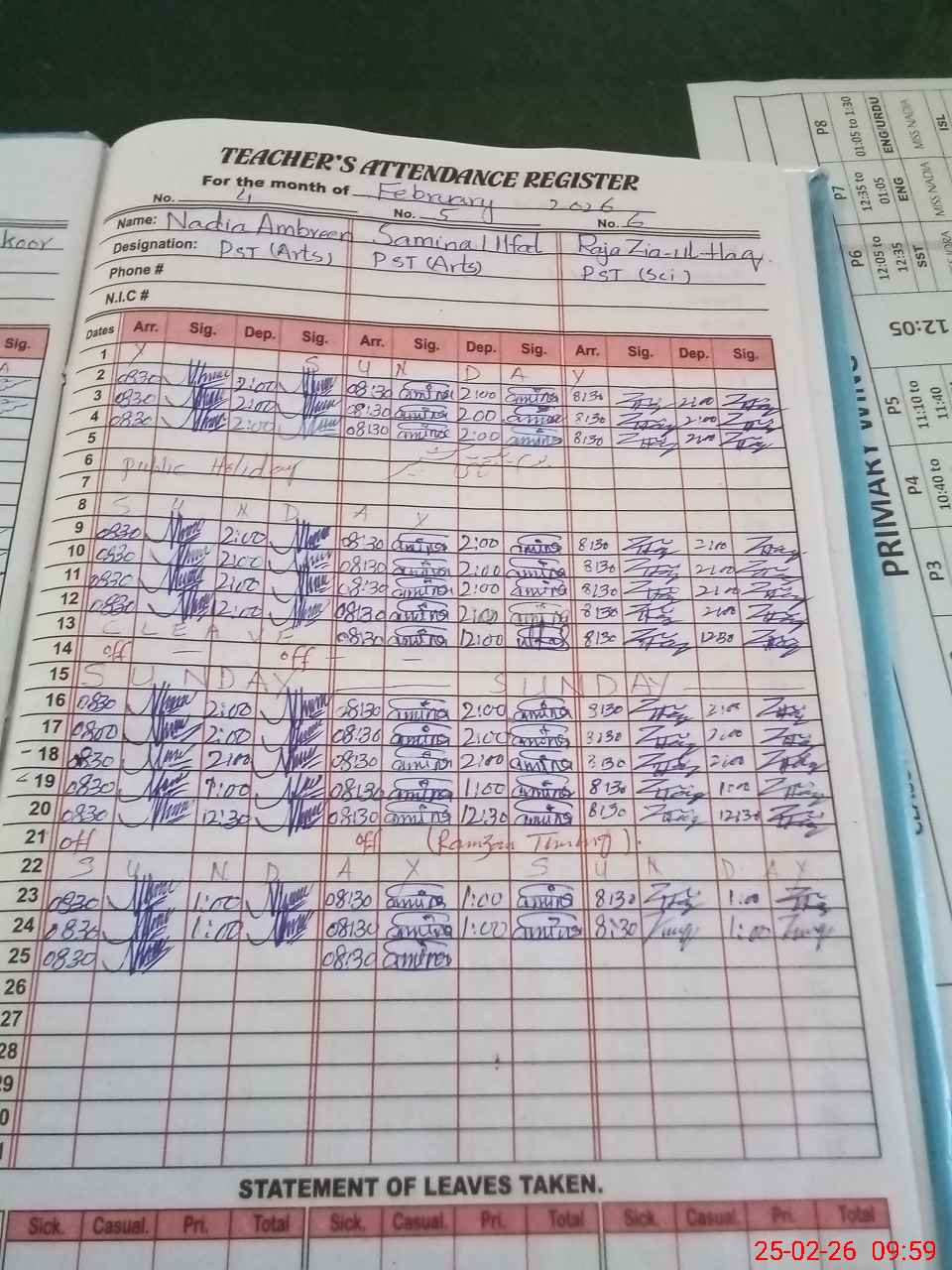 | 37**** | Ra**** Zi**** UlHa**** | PST Science/Maths | Regular | 0 | 0 | 0 | 0 | 0 | 0 | 0 | 0 | 0 | Absent (Un-Authorized) |