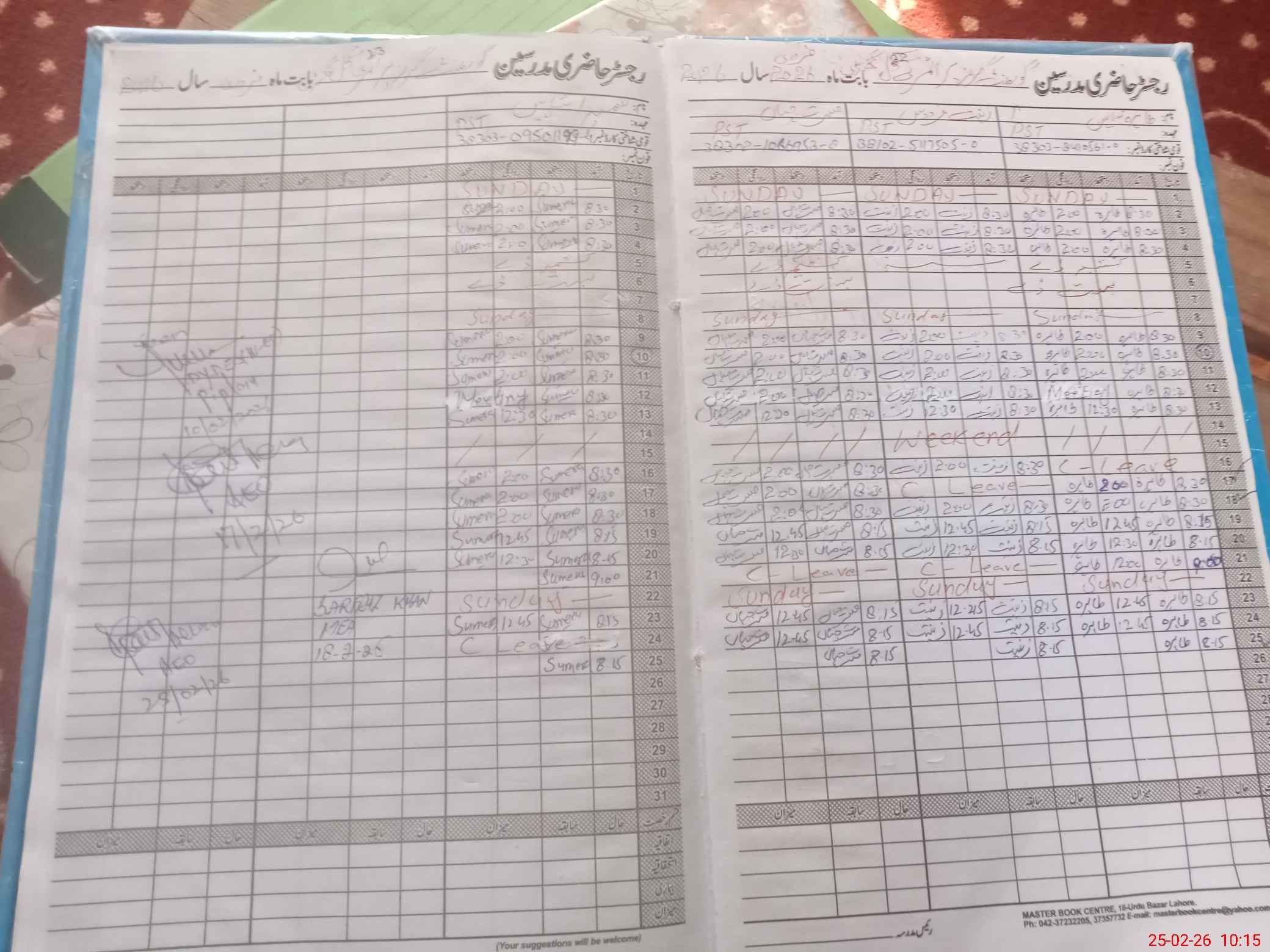 | CNIC | Full Name | Designation | R/C | Absence During Last Calender Month |