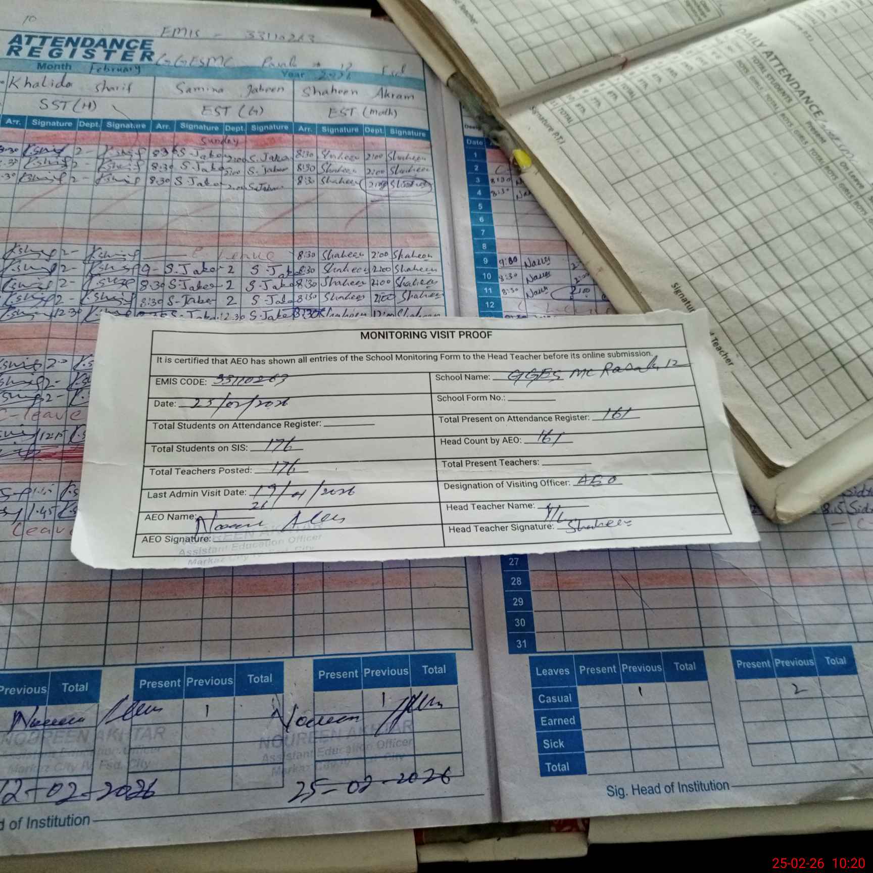 | Attendance Register | Head Teacher | MEA with School | Visit Proof |