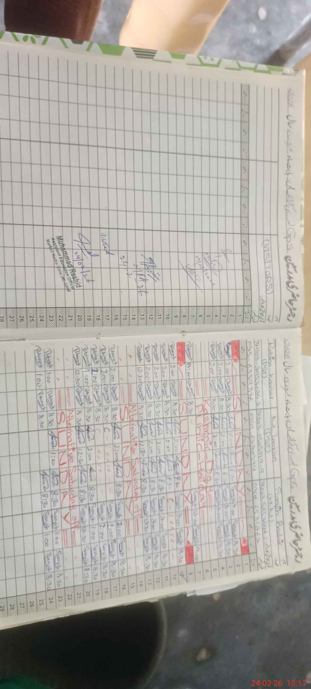 | CNIC | Full Name | Designation | R/C | Absence During Last Calender Month |