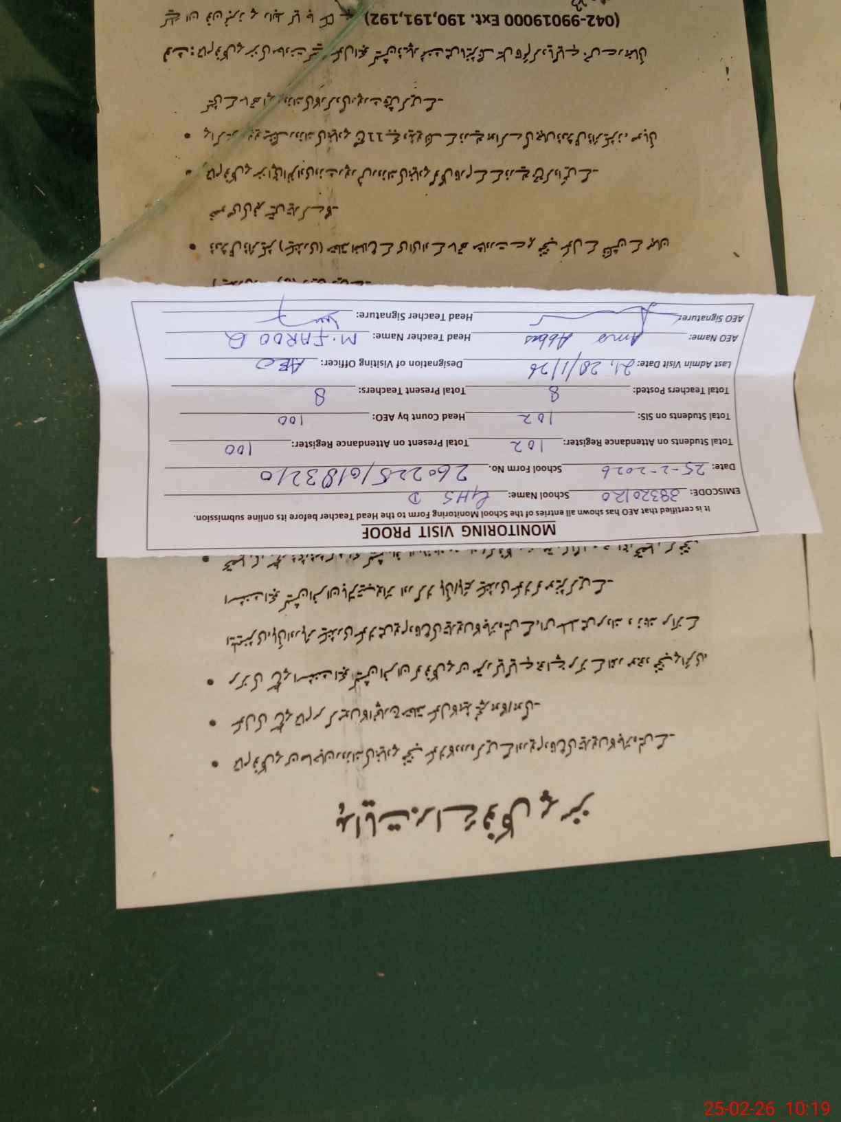 | Certified that this School was Inspected by the Undersigned MEA/DMO Today and the Information Stated Above is as Per Record. | |||||