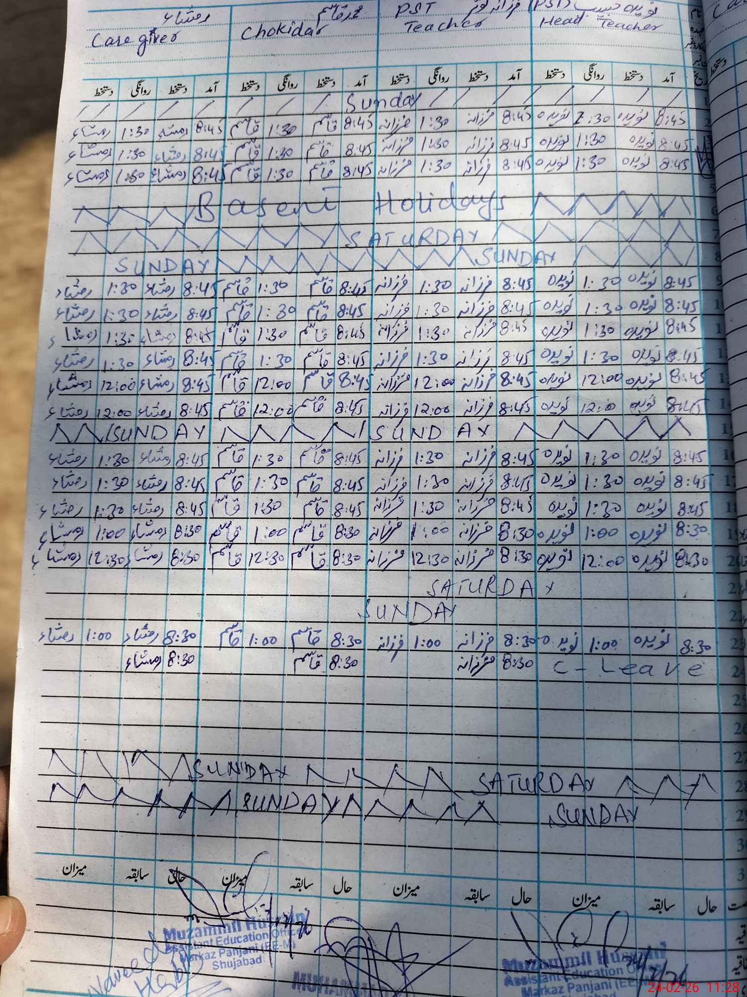 | CNIC | Full Name | Designation | R/C | Absence During Last Calender Month |