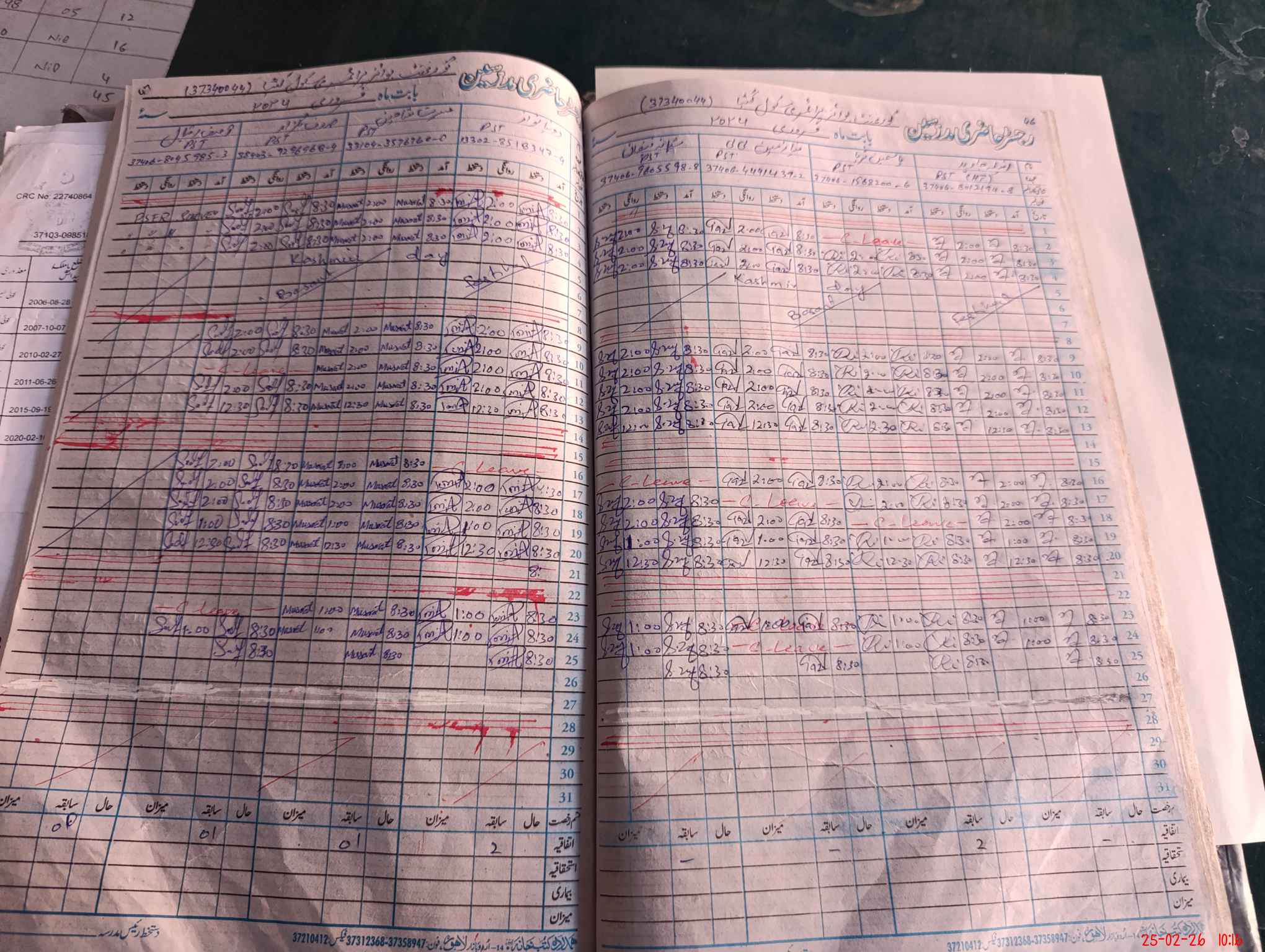| CNIC | Full Name | Designation | R/C | Absence During Last Calender Month |