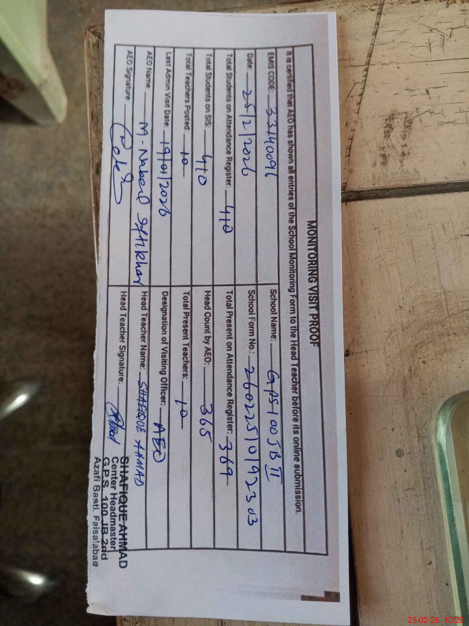 | EMIS Code: 33140096 | Name of School: GPS 100 JB AZAFI BASTI | |||
