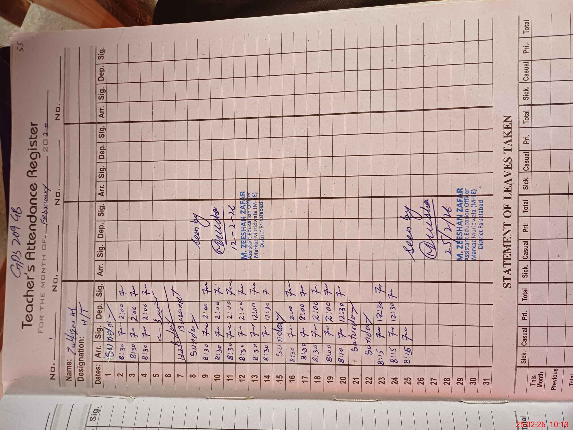 | Name: ZU**** AL**** Designation: (School Headmaster's/Headmistress's) PST Phone/Cell Number: 03**** |