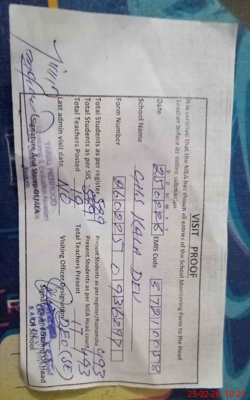 | EMIS Code: 37210058 | Name of School: GHS KALA DEV | |||