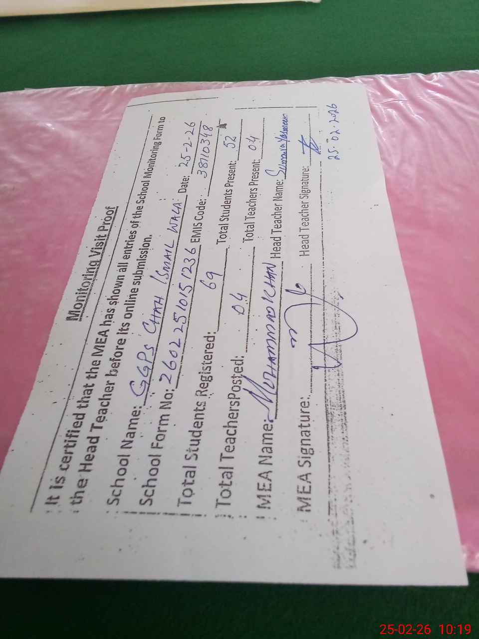 | Certified that this School was Inspected by the Undersigned MEA/DMO Today and the Information Stated Above is as Per Record. | |||||