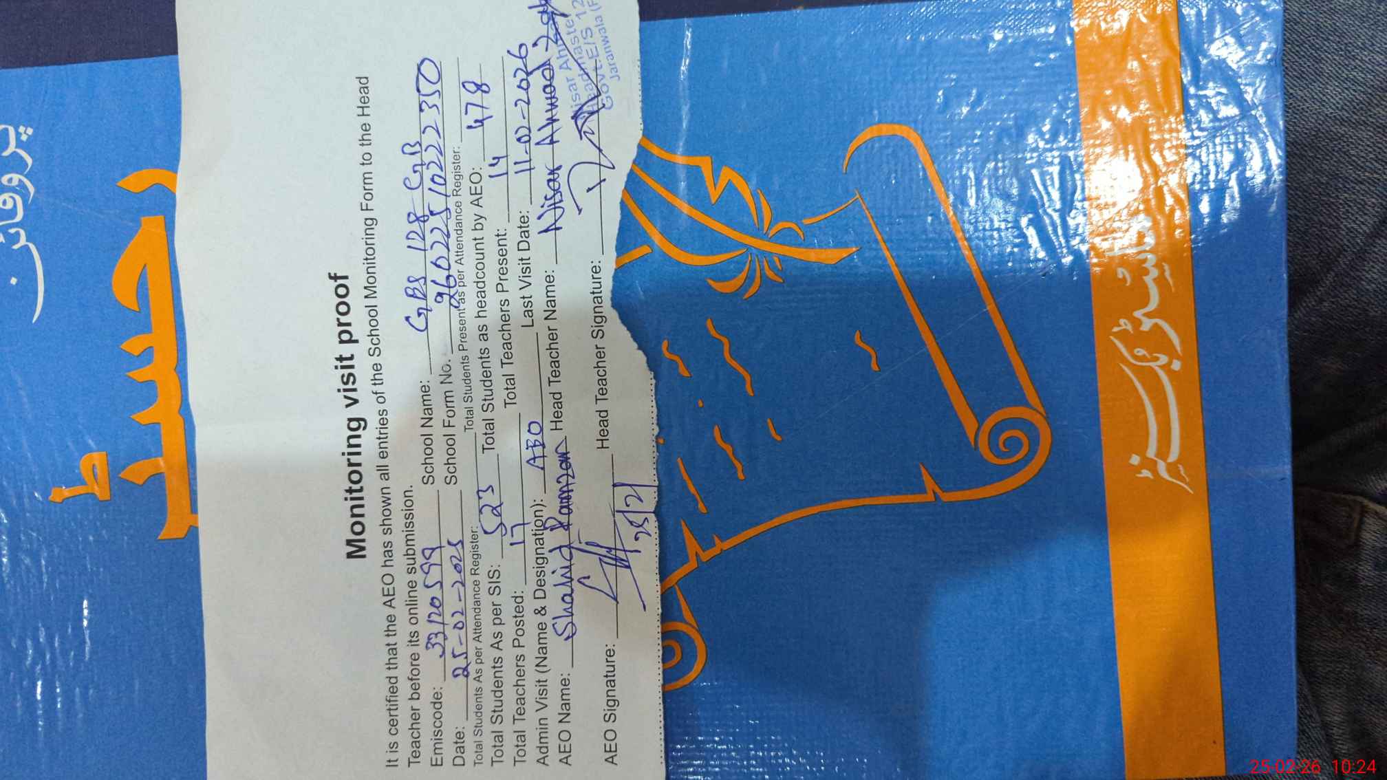 | Attendance Register | Head Teacher | MEA with School | Visit Proof |