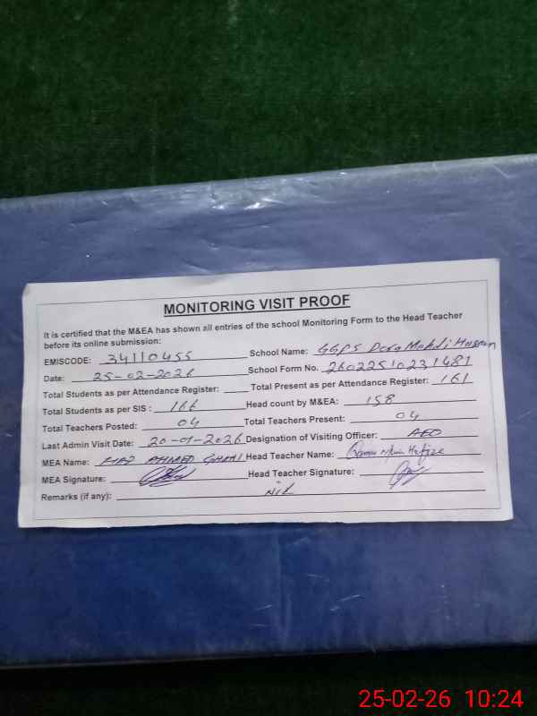 | EMIS Code: 34110455 | Name of School: GGPS DERA MEHDI HASSAN | |||