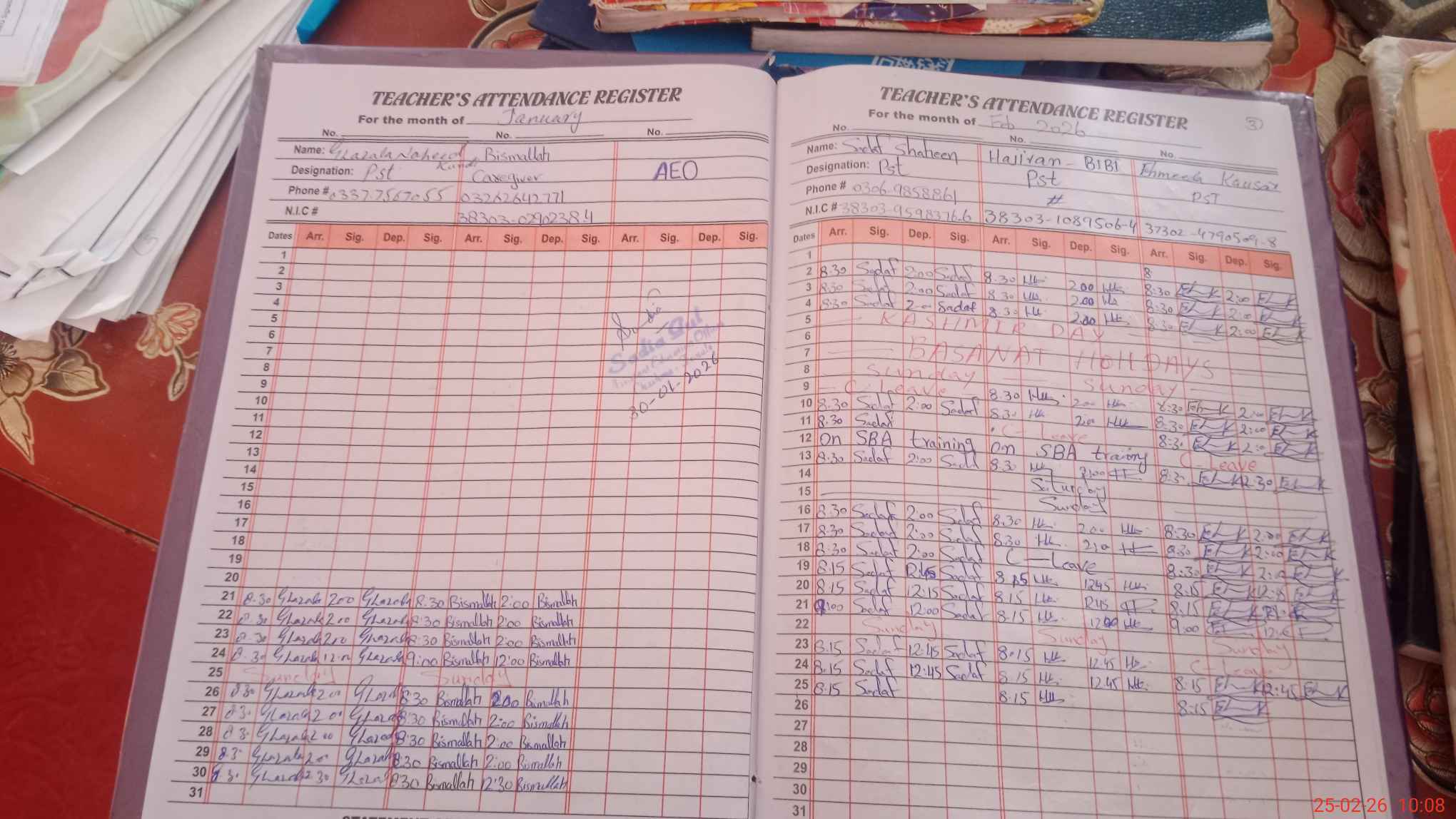 | Name: SA**** SH**** Designation: (School Headmaster's/Headmistress's) PST Phone/Cell Number: 03**** |
