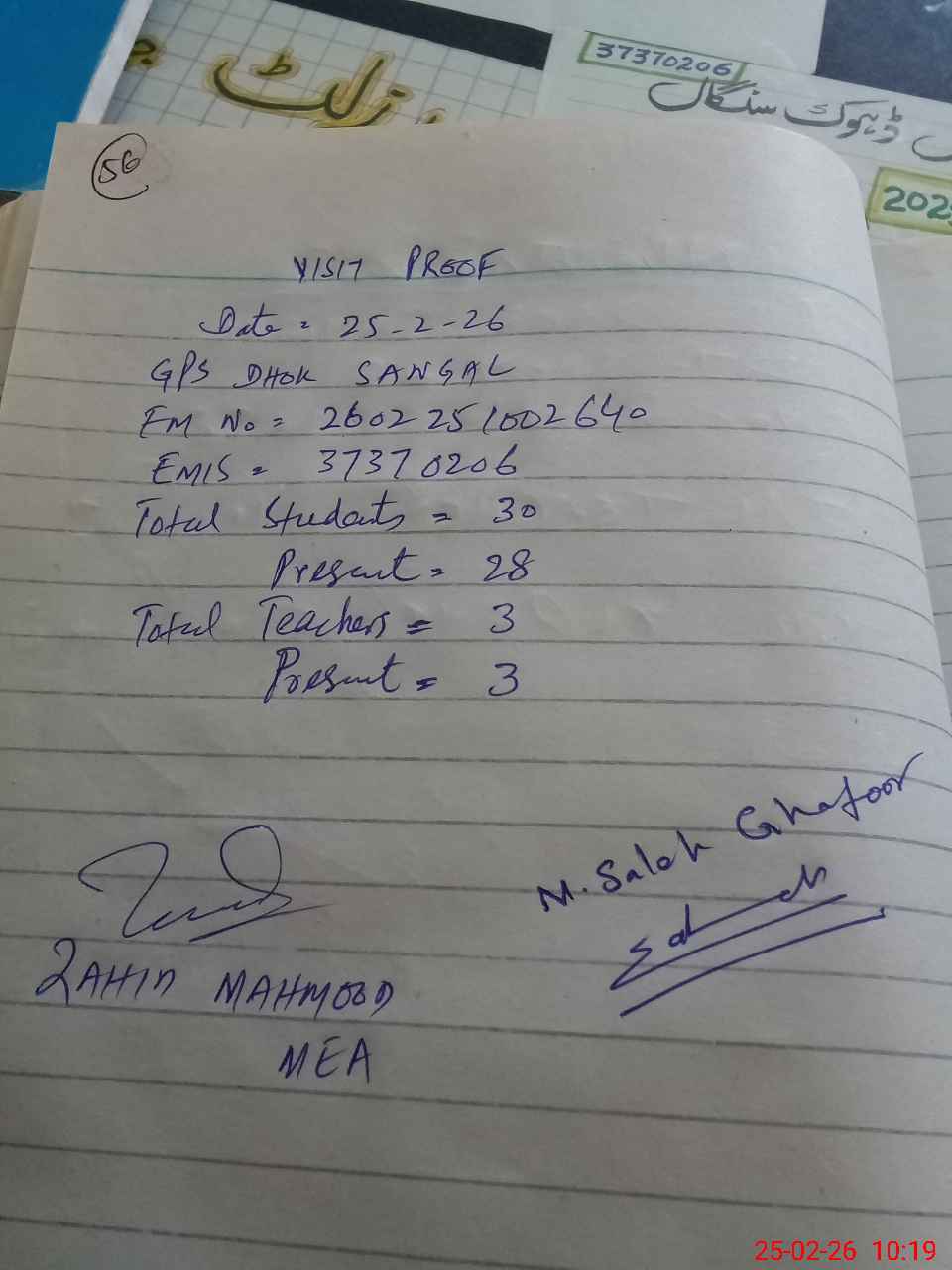 | EMIS Code: 37370206 | Name of School: GPS DHOK SANGAL | |||