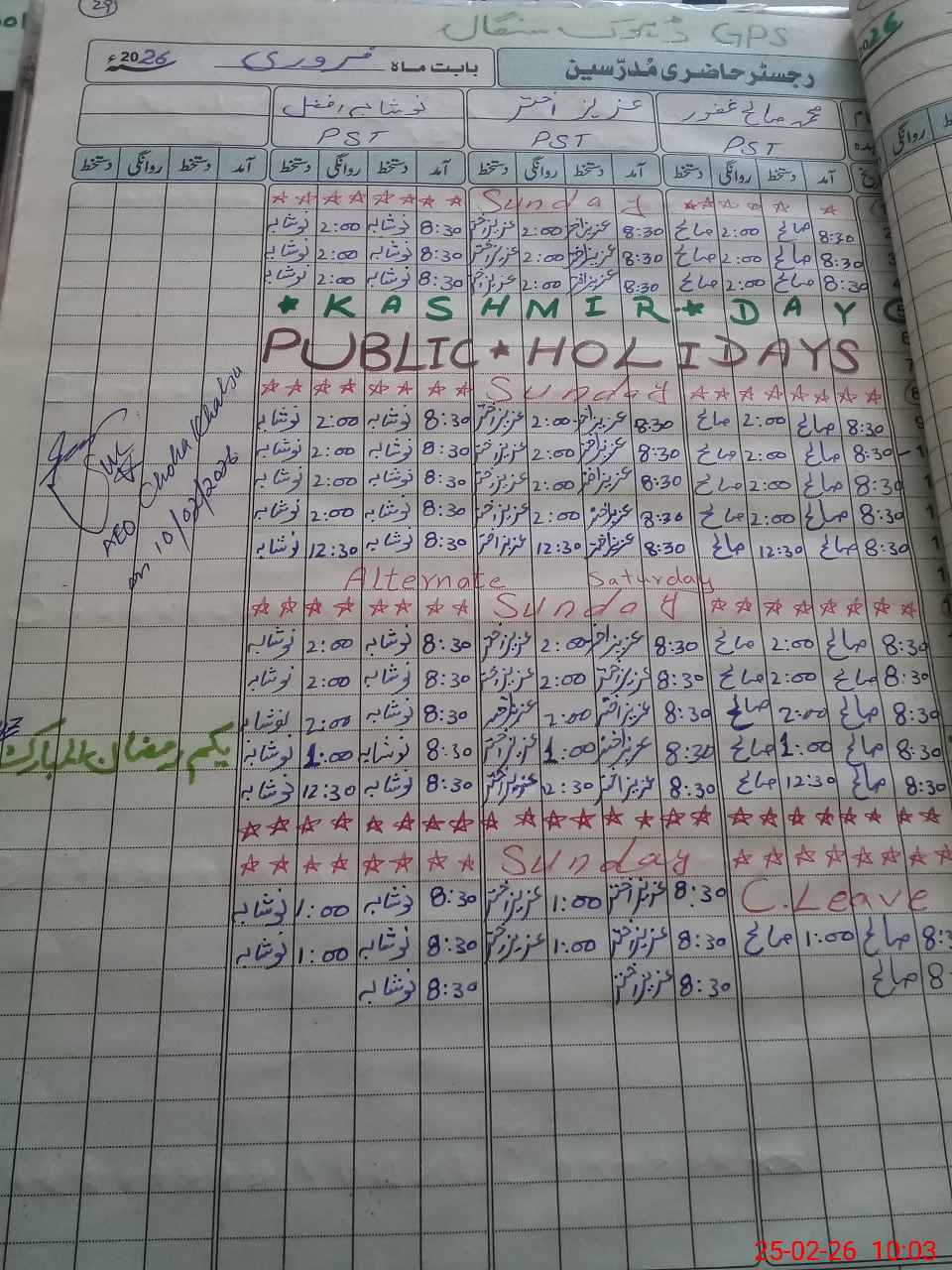 | Name: Mu**** Qa**** UsSa**** Designation: (School Headmaster's/Headmistress's) PST Phone/Cell Number: 03**** |