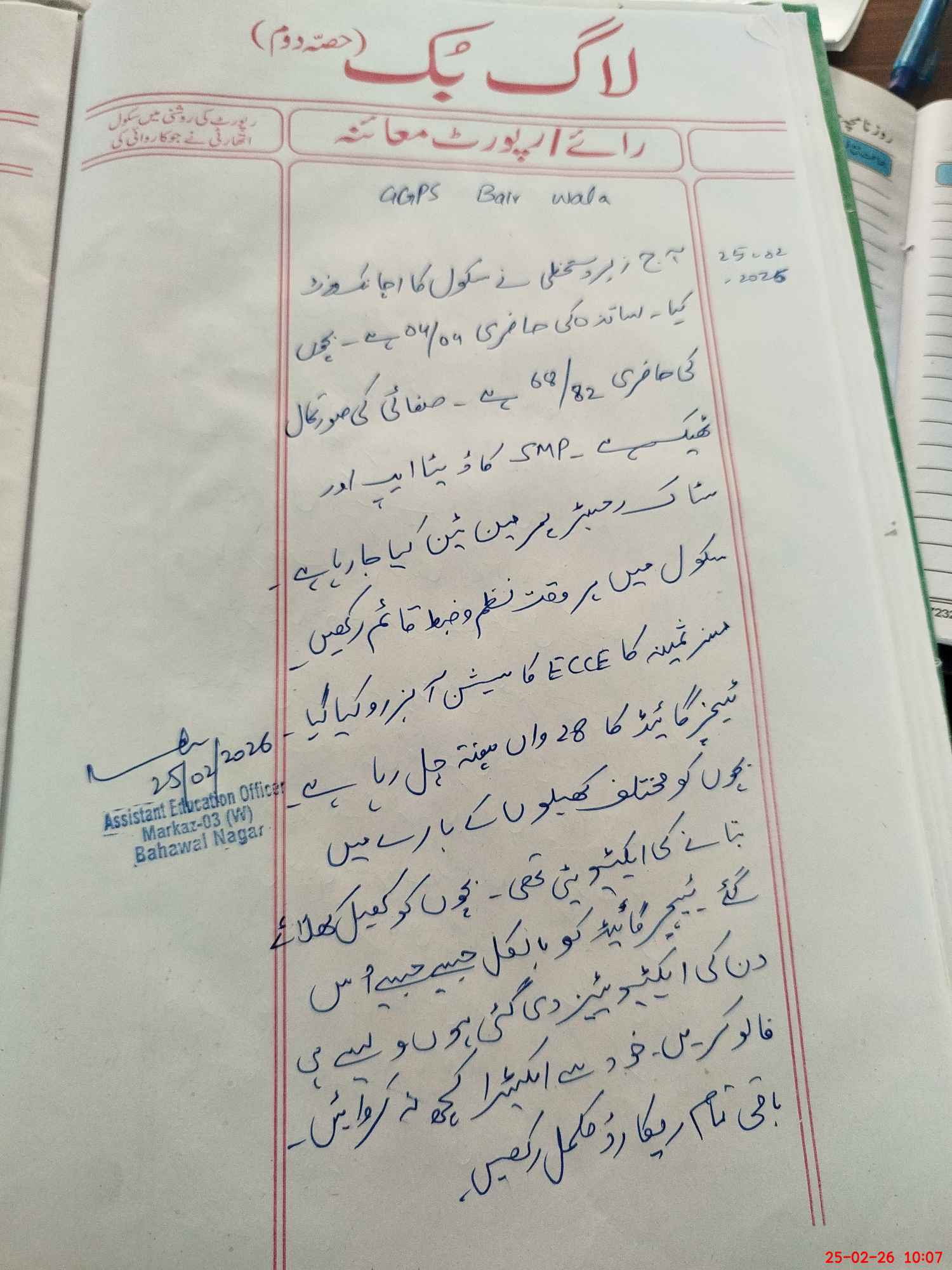 | District: BAHAWALNAGAR | Tehsil: BAHAWALNAGAR | Markaz: BWN.3-FEMALE | Level: Primary | |
