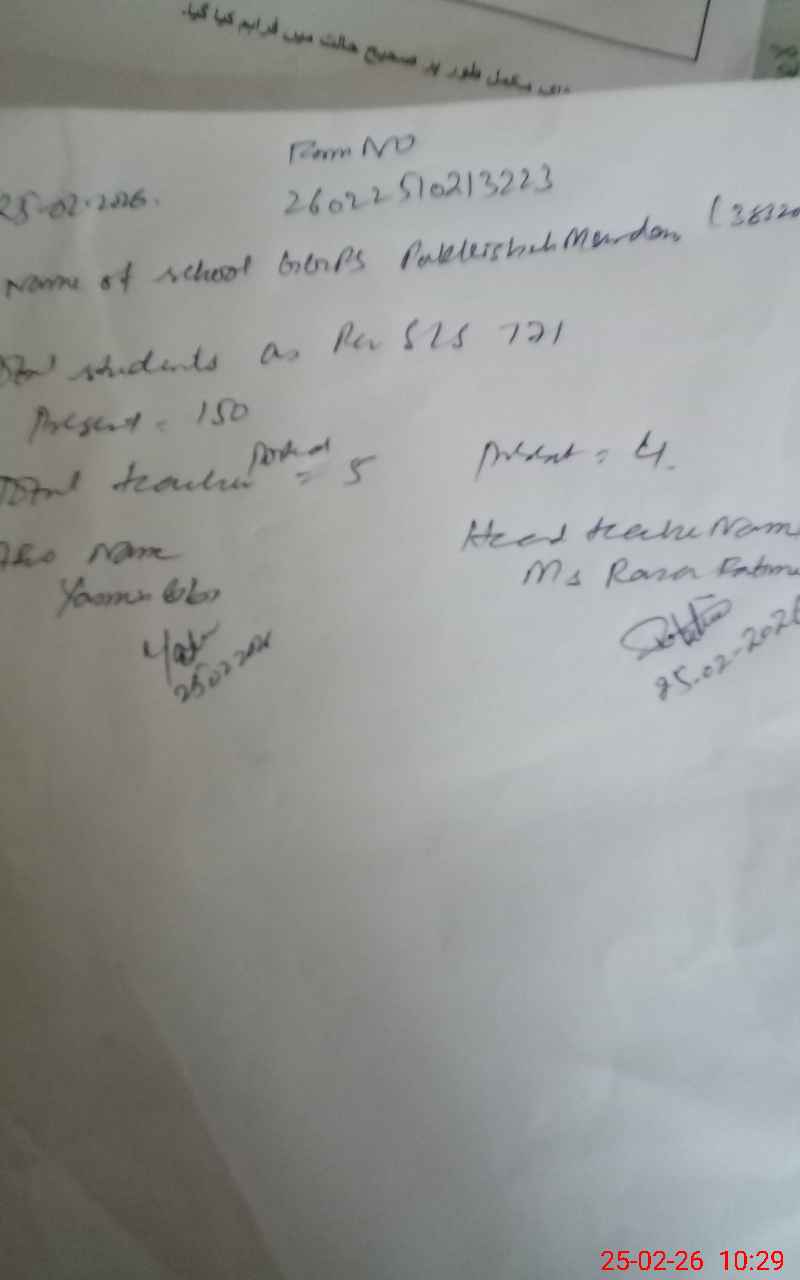 | EMIS Code: 38320872 | Name of School: GGPS PAKKI SHAH MARDAN | |||
