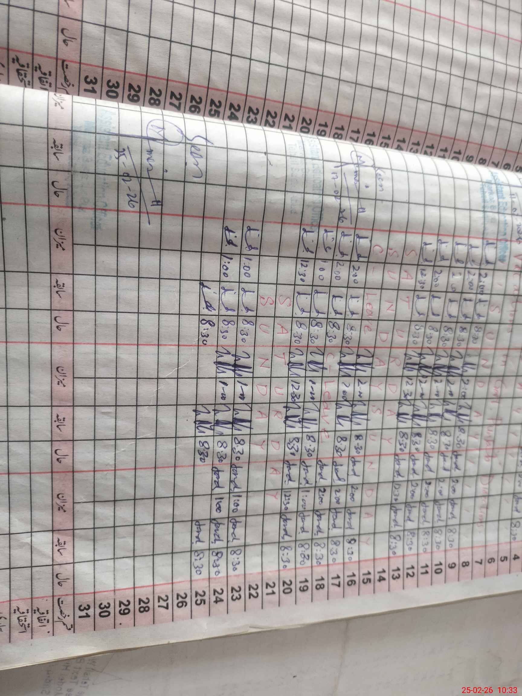 | Leave | Duty | Absent | Maternity | Medical | Ex- Pak |
