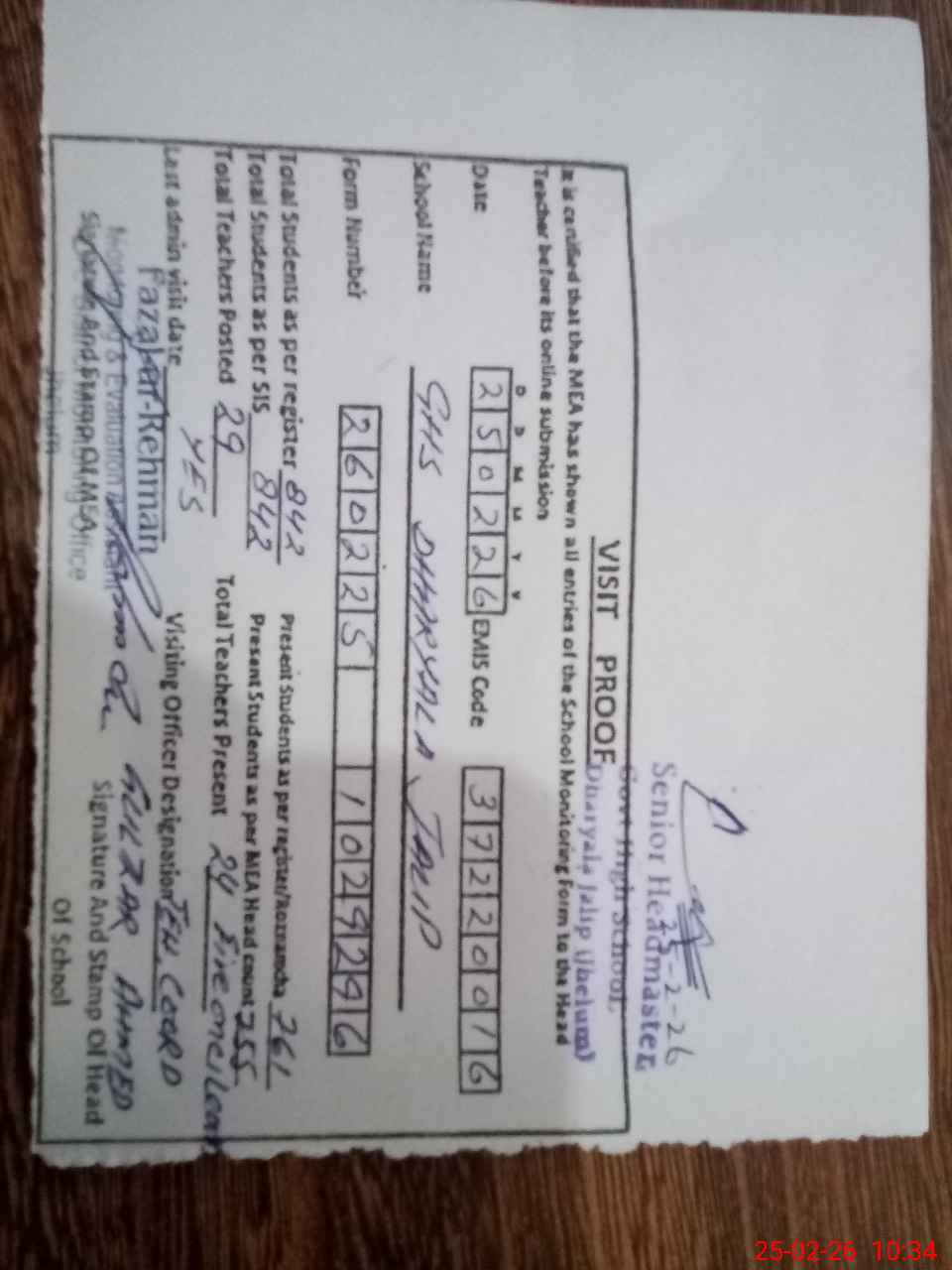 | EMIS Code: 37220016 | Name of School: GHS DHARYALA JALIB | |||
