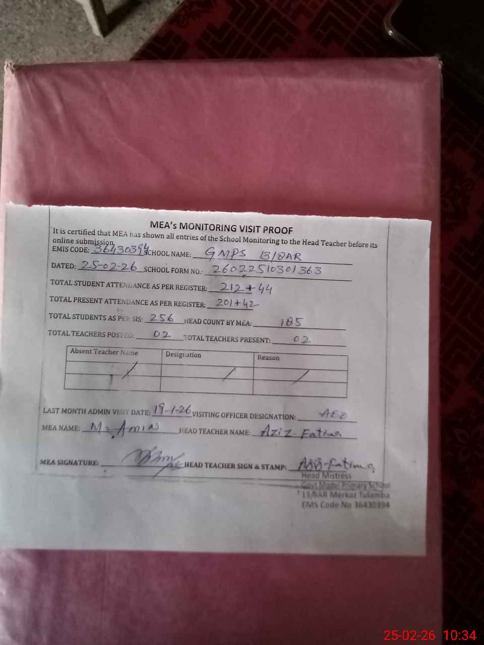 | EMIS Code: 36430394 | Name of School: GMPS 13/8-AR, P/O 20/8-R, TULAMBA | |||