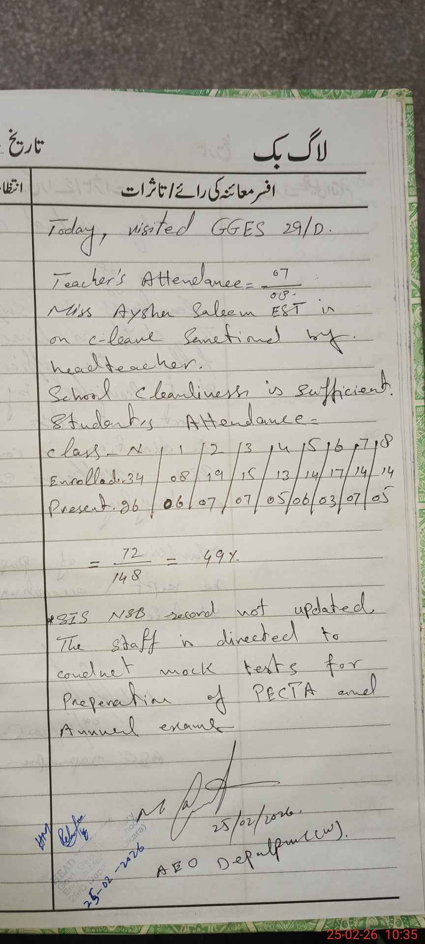 | EMIS Code: 39310137 | Name of School: GGES 29-D | |||
