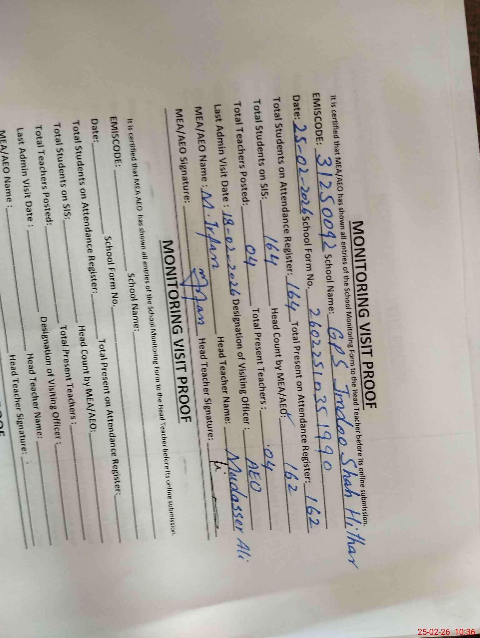 | EMIS Code: 31250092 | Name of School: GPS JINDOO SHAH HITHAR | |||