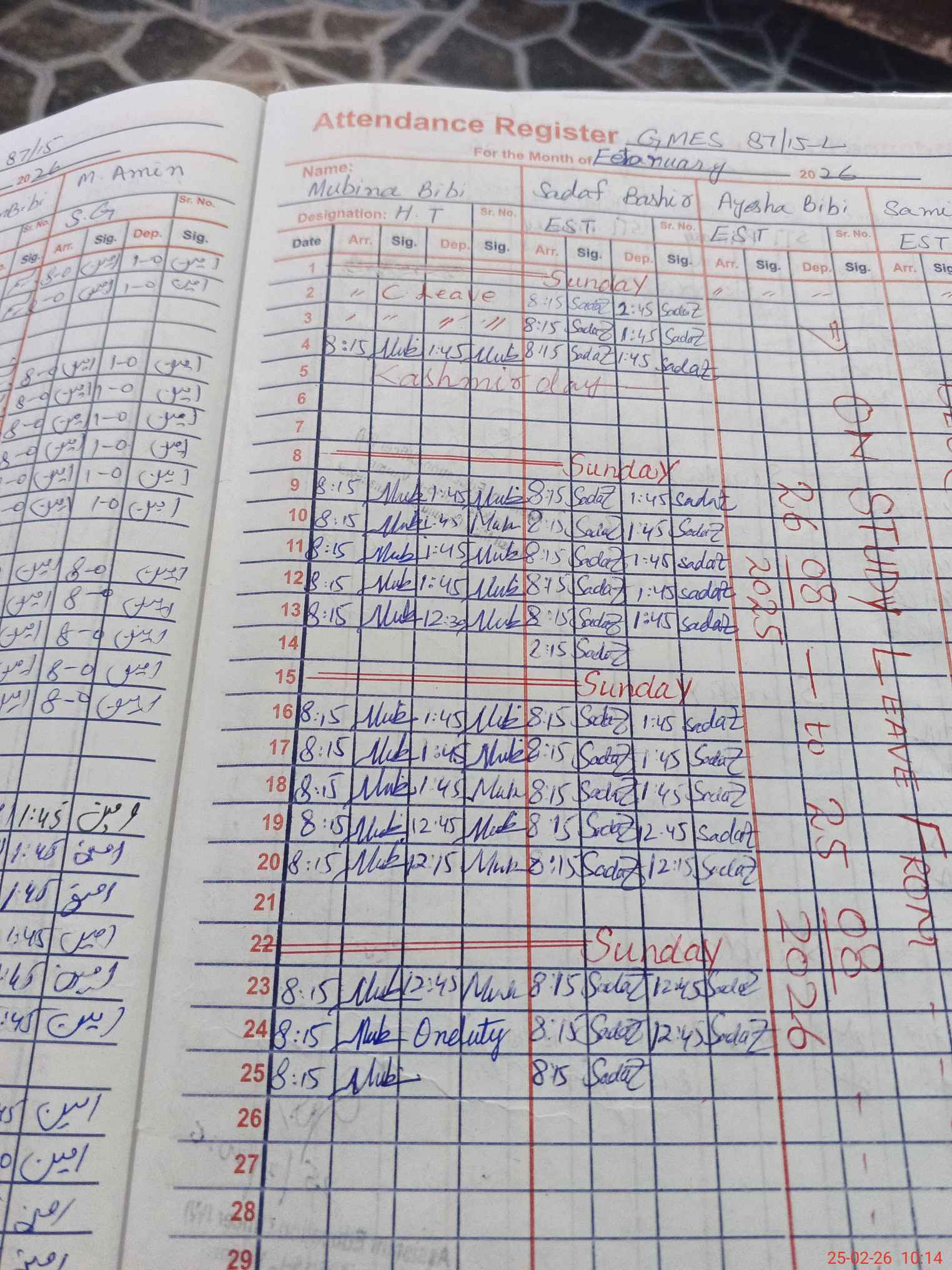 | Leave | Duty | Absent | Maternity | Medical | Ex- Pak |