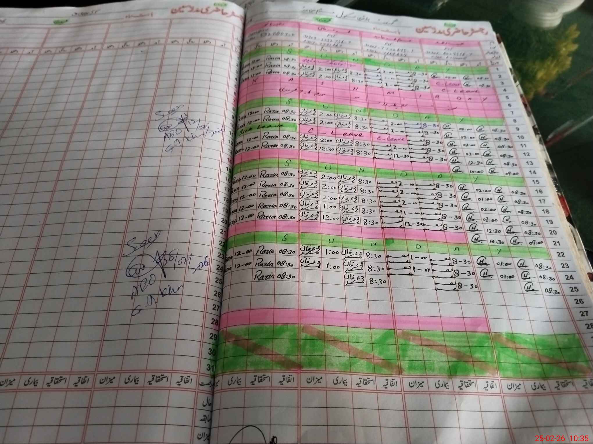 | Leave | Duty | Absent | Maternity | Medical | Ex- Pak |