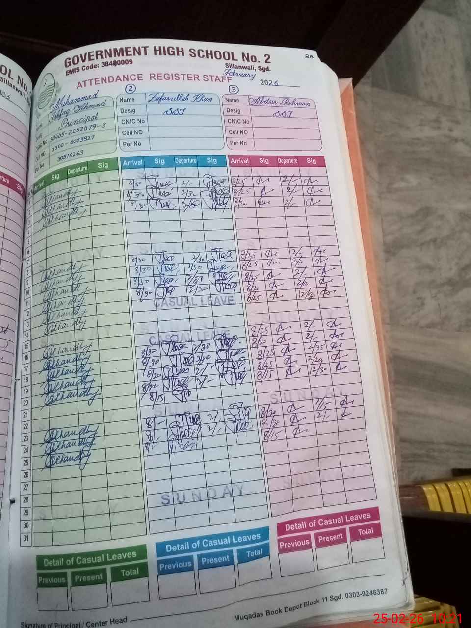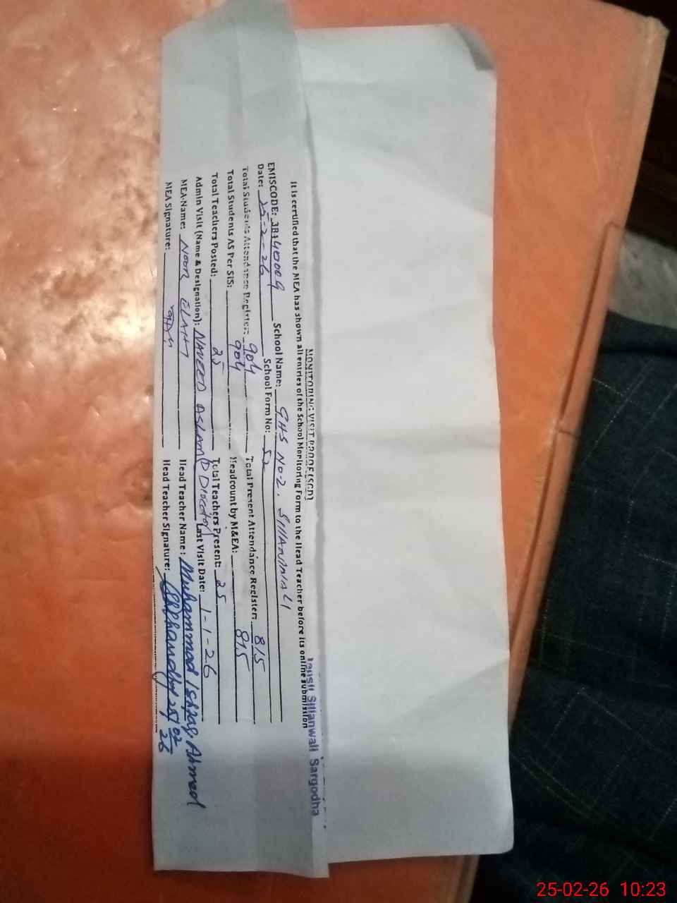 | EMIS Code: 38440009 | Name of School: GHS NO.2 SILLANWALI | |||