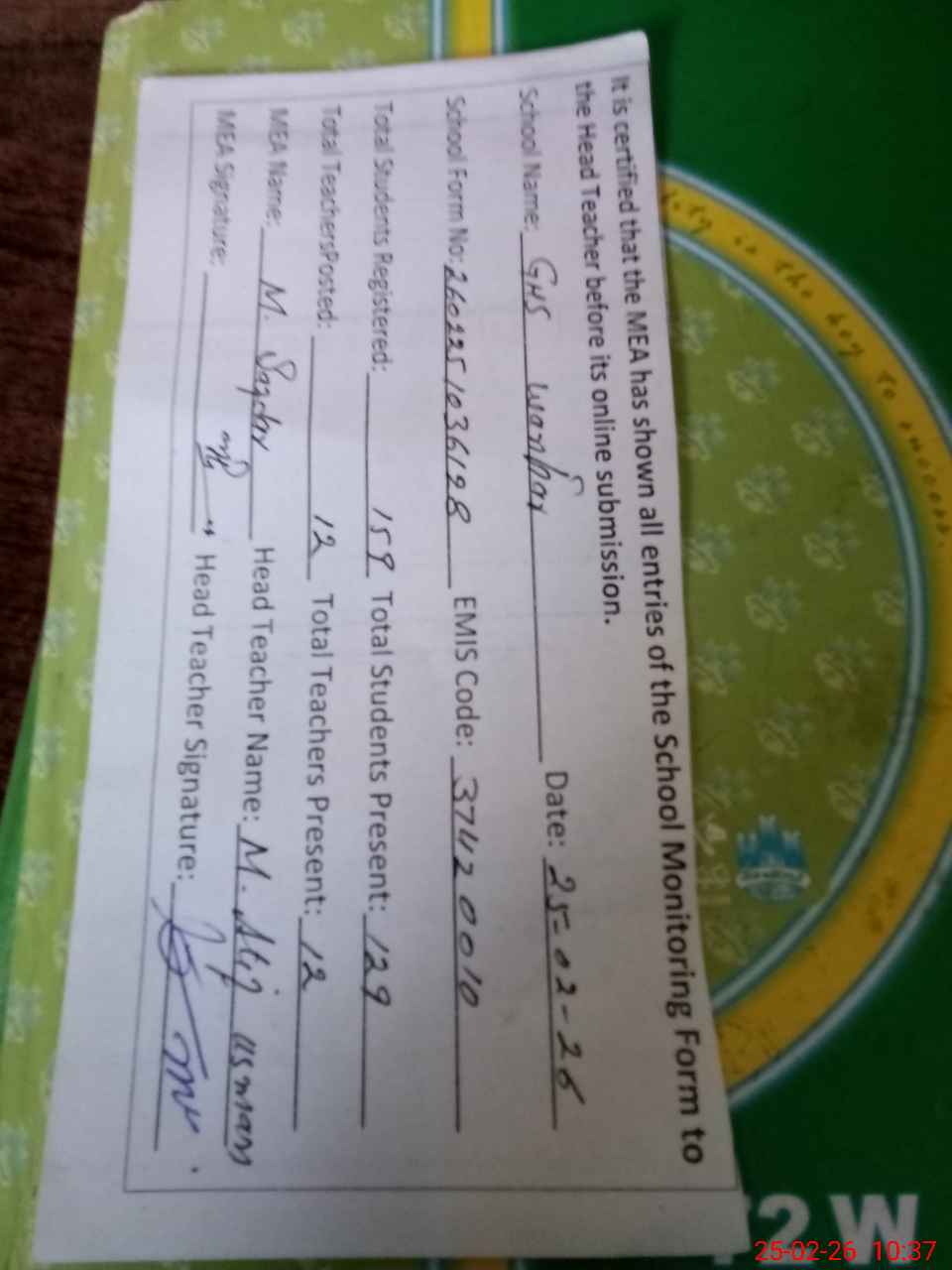 | EMIS Code: 37420010 | Name of School: GHS WANHAR | |||