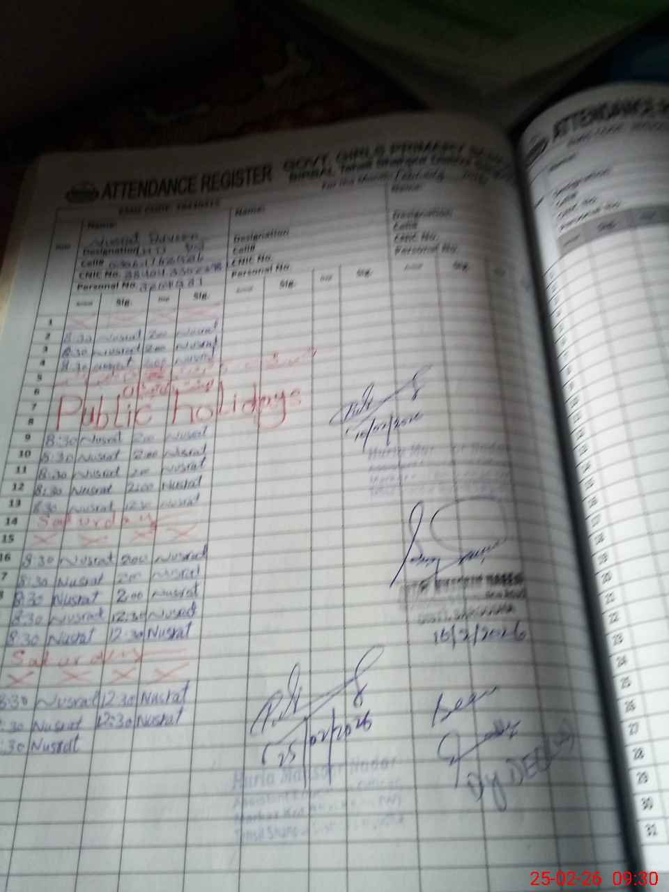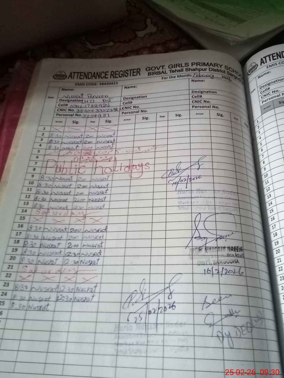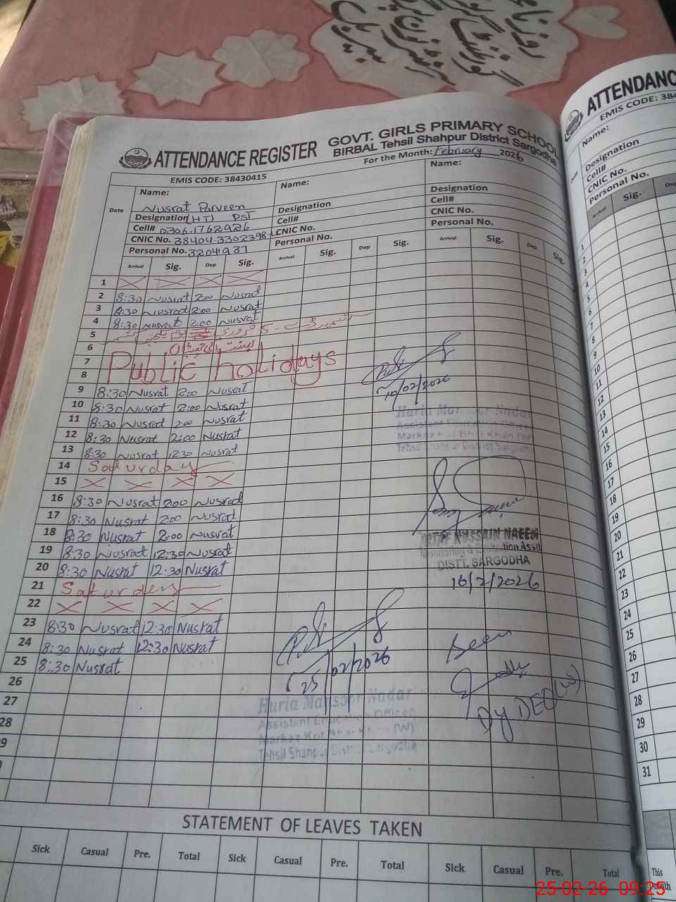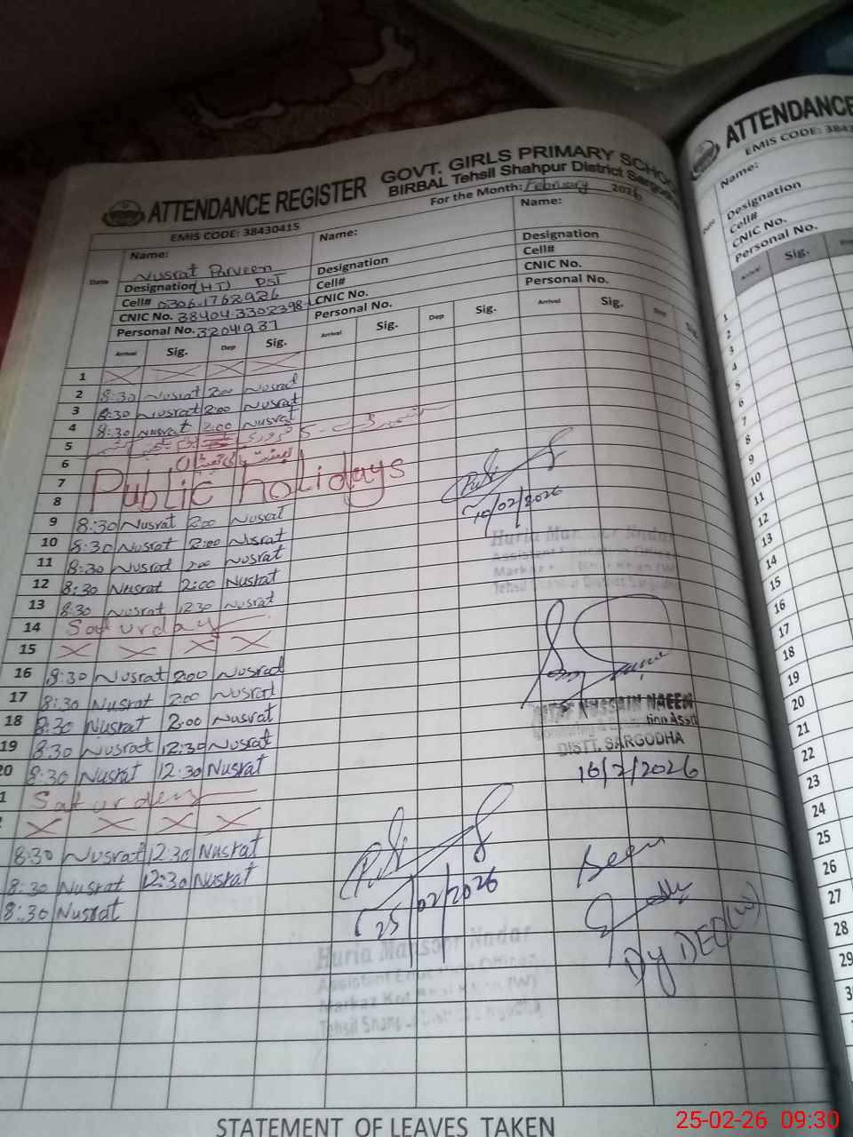 | Name: NU**** PA**** Designation: (School Headmaster's/Headmistress's) PST Phone/Cell Number: 03**** |