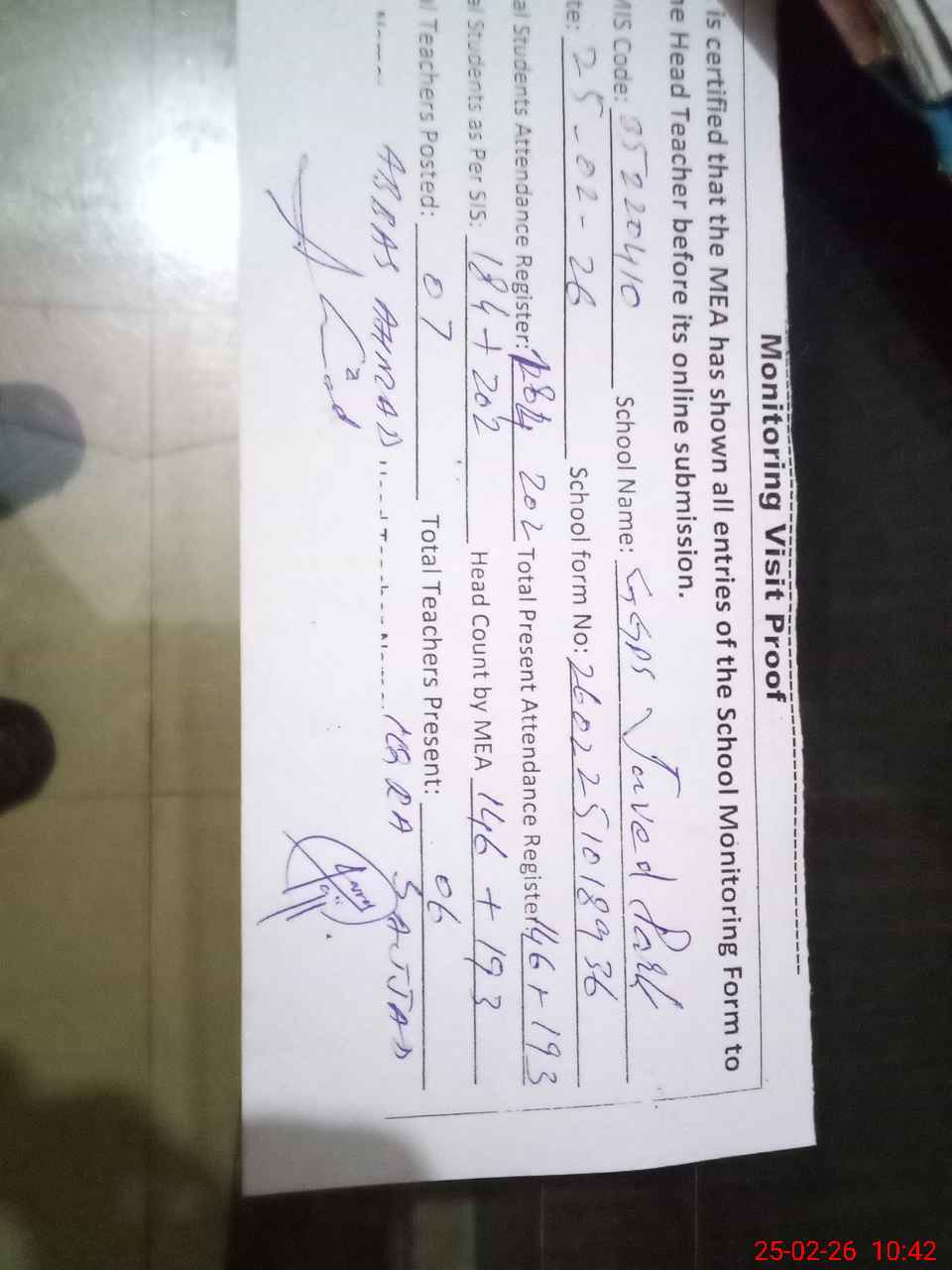 | Certified that this School was Inspected by the Undersigned MEA/DMO Today and the Information Stated Above is as Per Record. | |||||