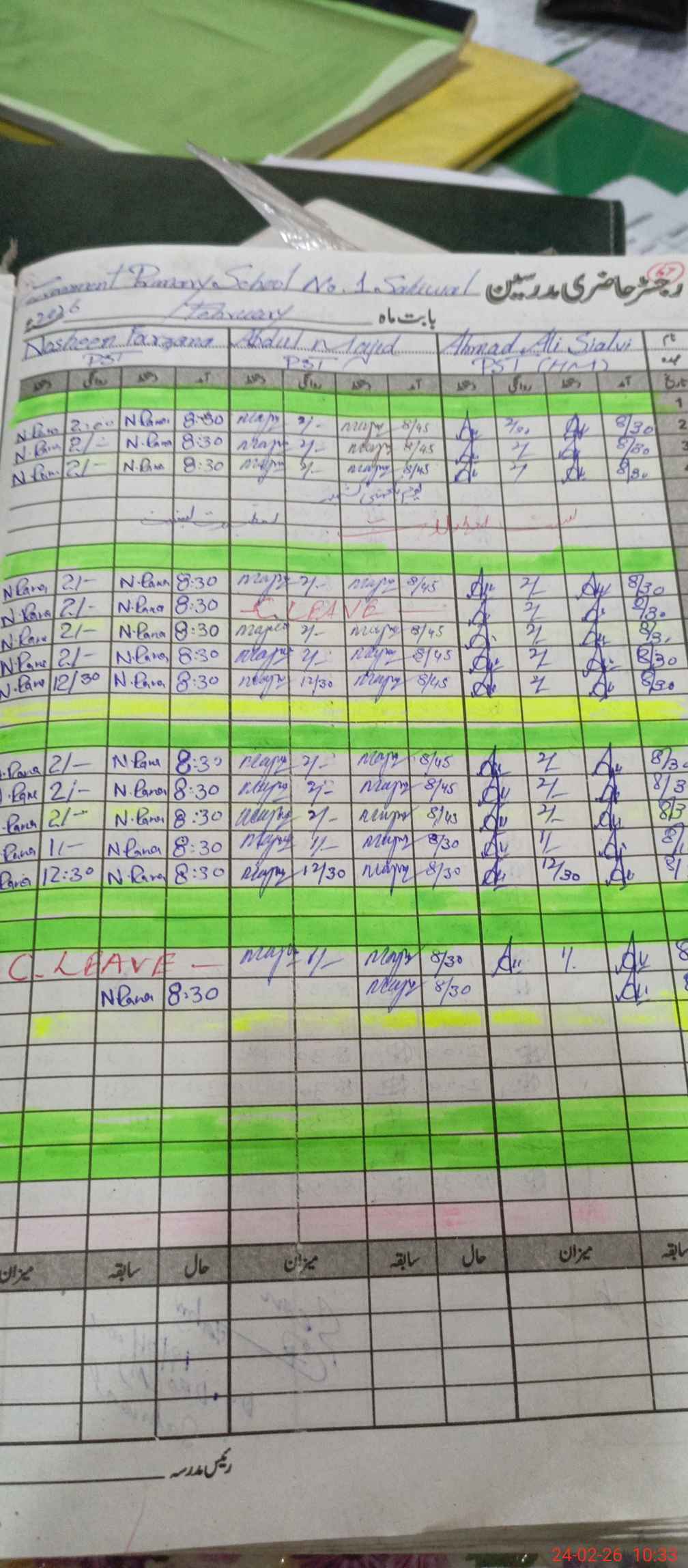 | Leave | Duty | Absent | Maternity | Medical | Ex- Pak |