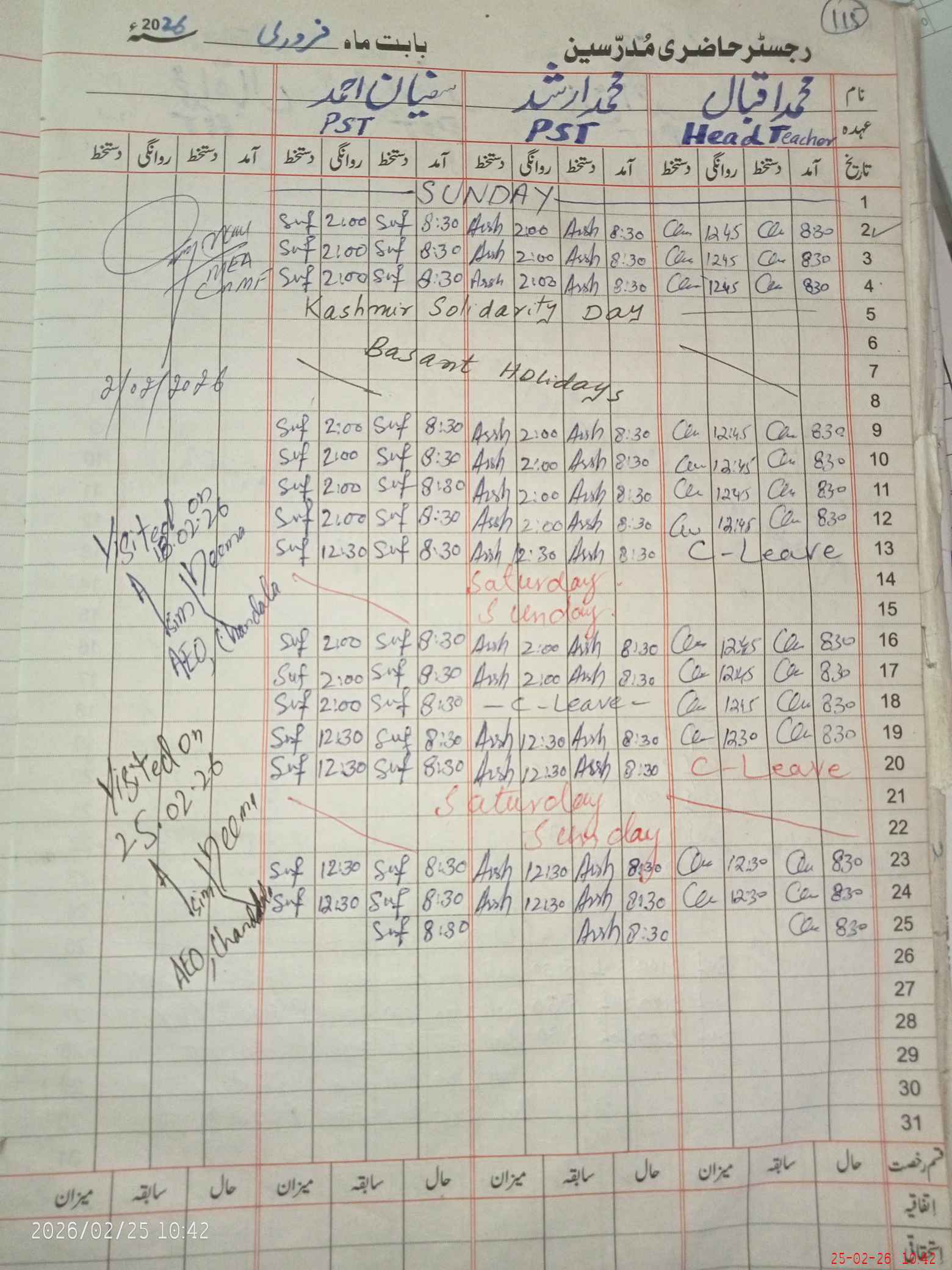 | CNIC | Full Name | Designation | R/C | Absence During Last Calender Month |
