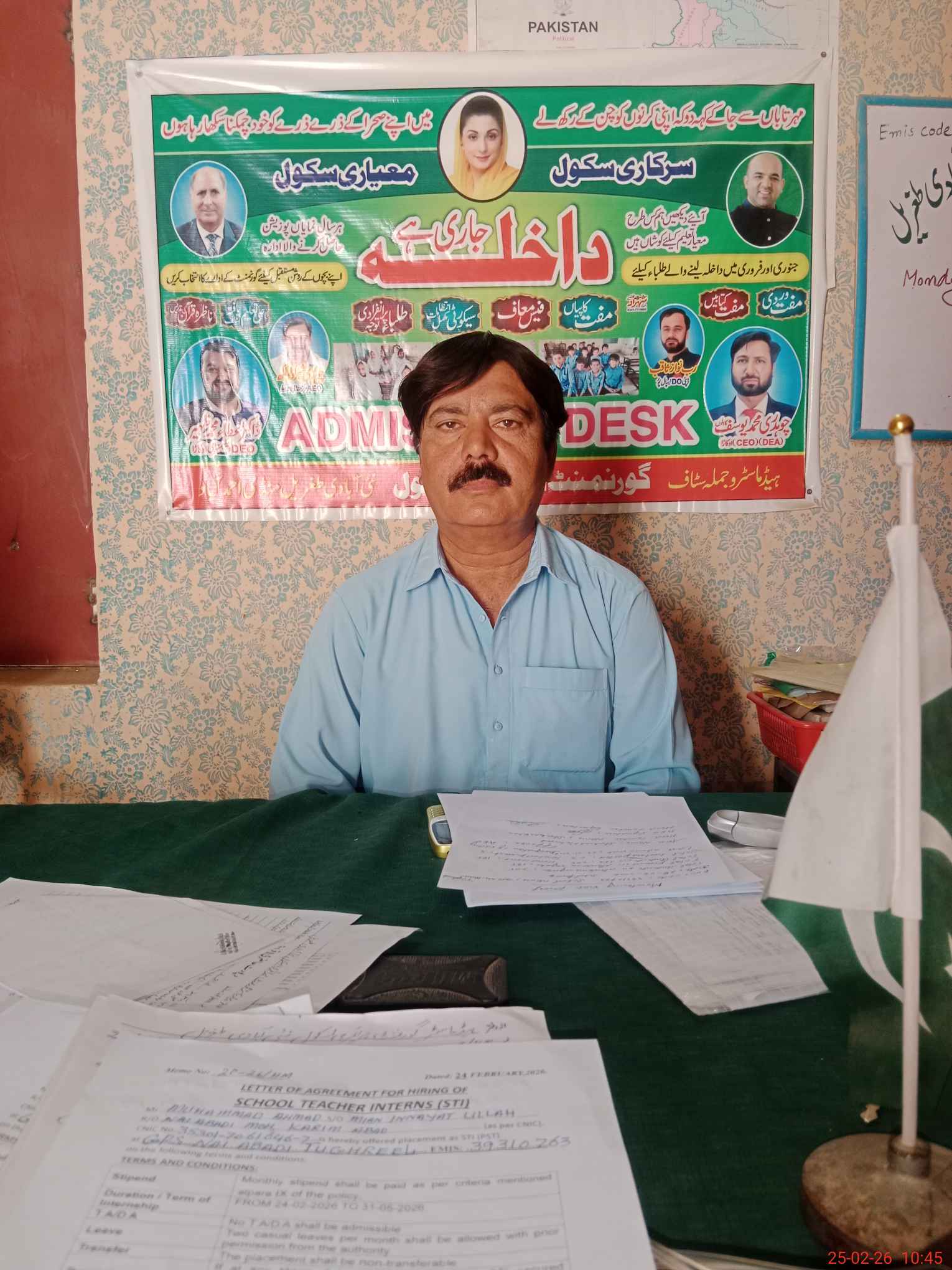 | Name: Sh**** Ba**** Kh**** Designation: (School Headmaster's/Headmistress's) EST Phone/Cell Number: 03**** |