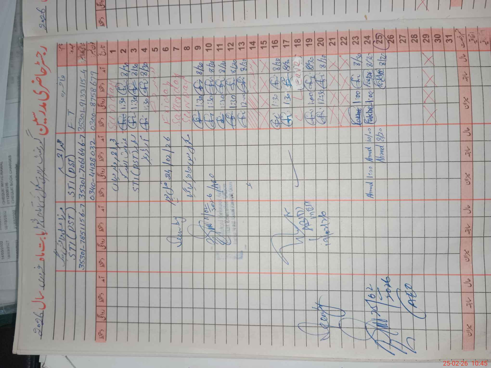 | CNIC | Full Name | Designation | R/C | Absence During Last Calender Month |
