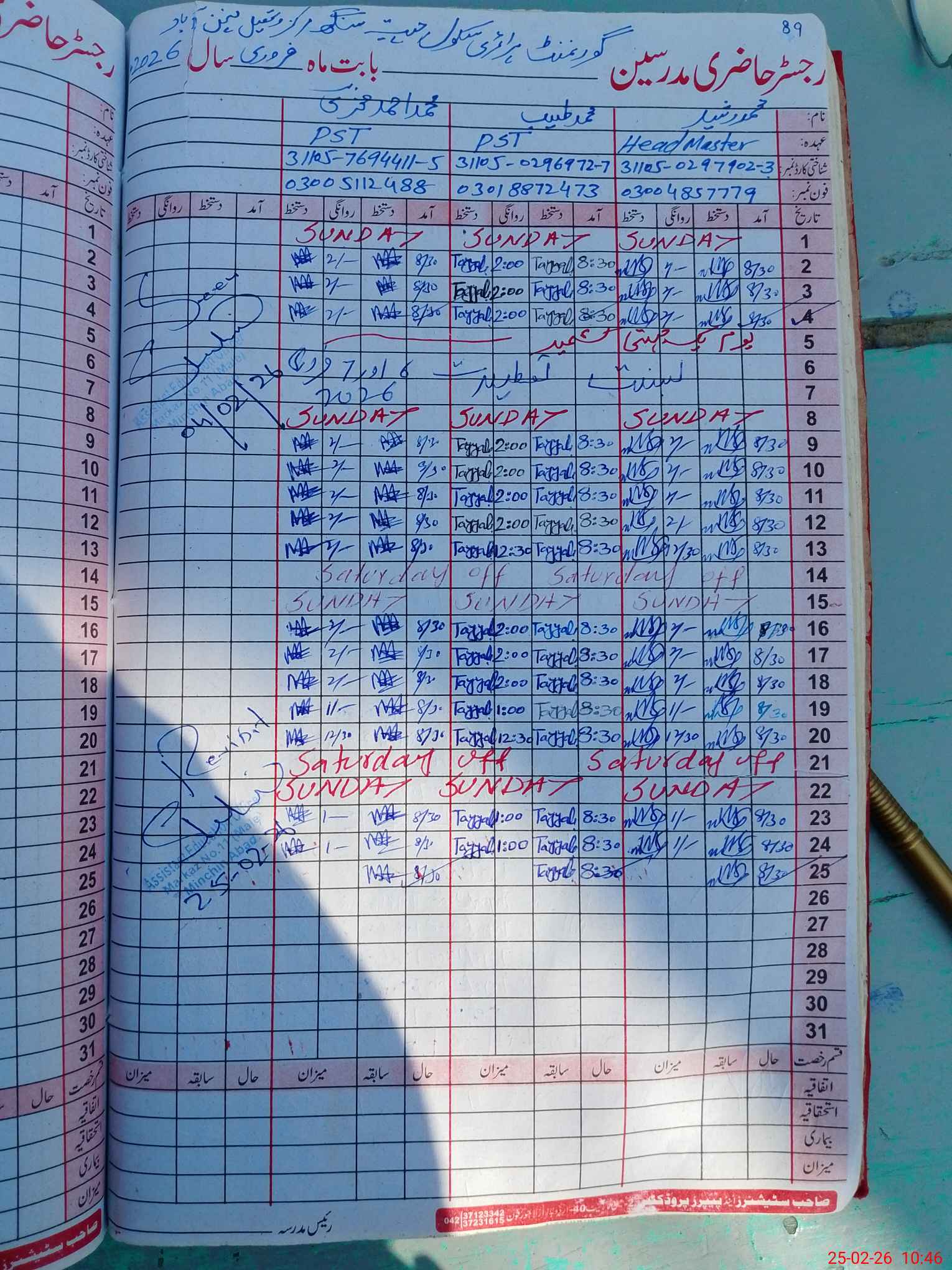 | Name: Mu**** Ra**** Designation: (School Headmaster's/Headmistress's) P S T Phone/Cell Number: 03**** |