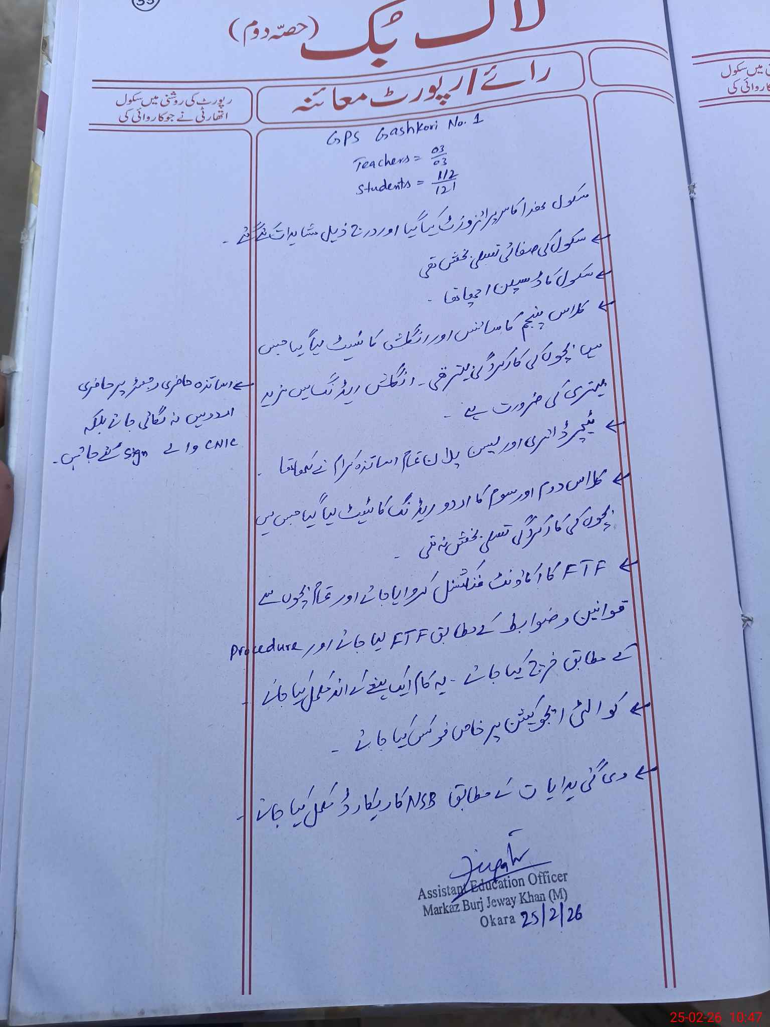 | Certified that this School was Inspected by the Undersigned MEA/DMO Today and the Information Stated Above is as Per Record. | |||||