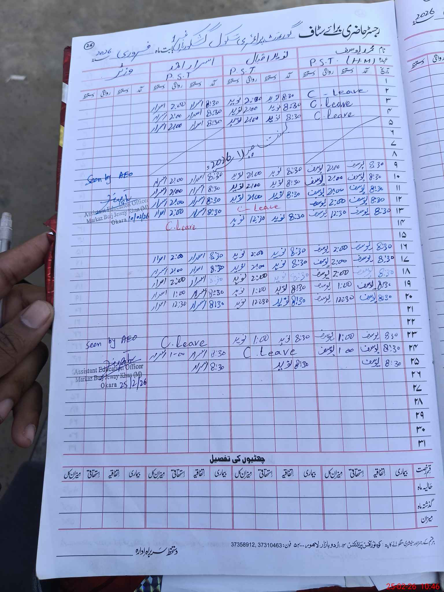 | Name: Mu**** Yo**** Designation: (School Headmaster's/Headmistress's) PST Phone/Cell Number: 03**** |