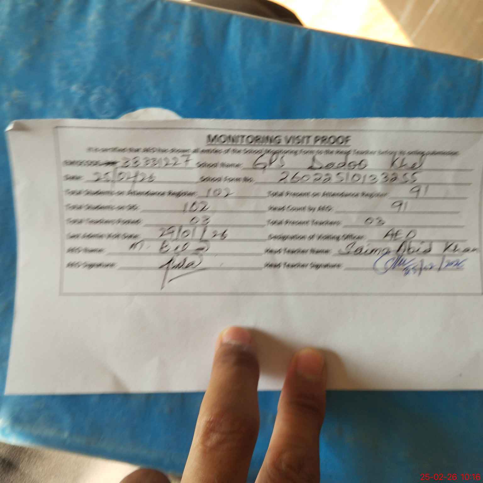 | EMIS Code: 38331227 | Name of School: GPS DADDOO KHELAN WALA | |||