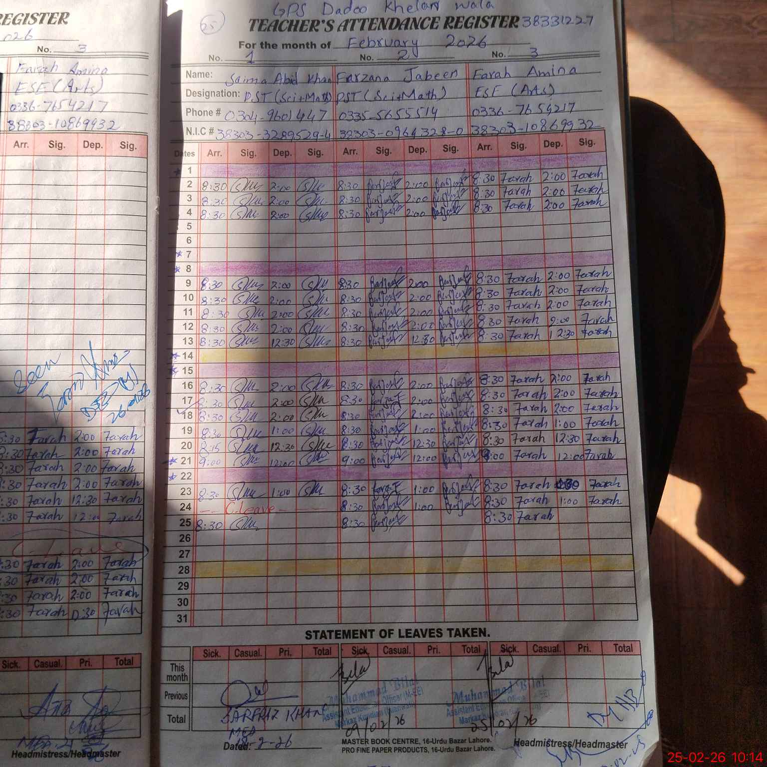 | Name: Sa**** Ab**** Kh**** Designation: (School Headmaster's/Headmistress's) PST Phone/Cell Number: 03**** |