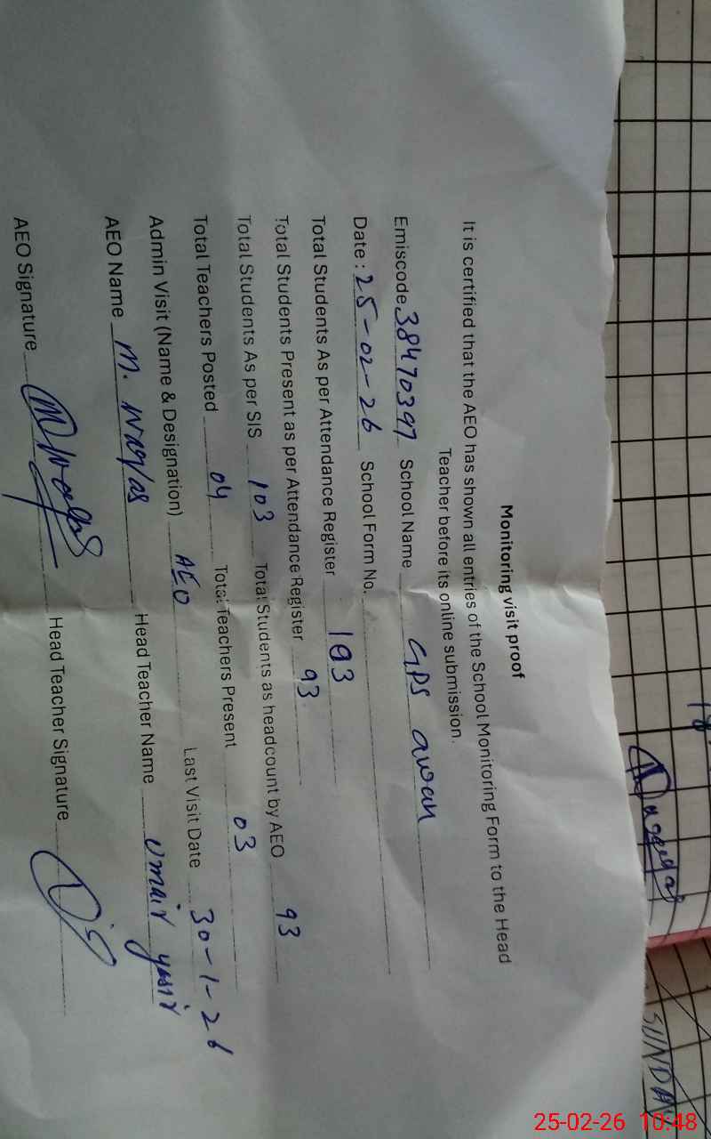 | EMIS Code: 38470397 | Name of School: GPS AWAN MIANI | |||