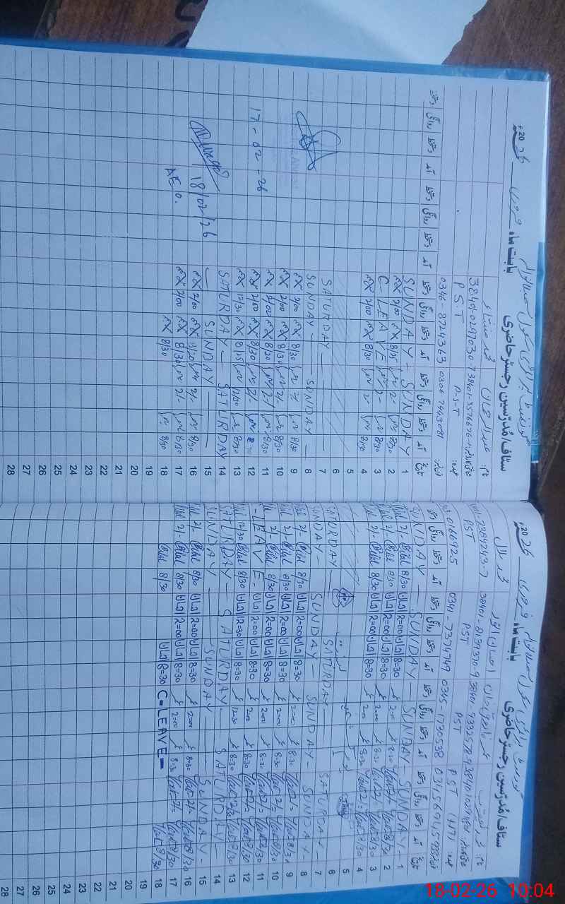 | CNIC | Full Name | Designation | R/C | Absence During Last Calender Month |